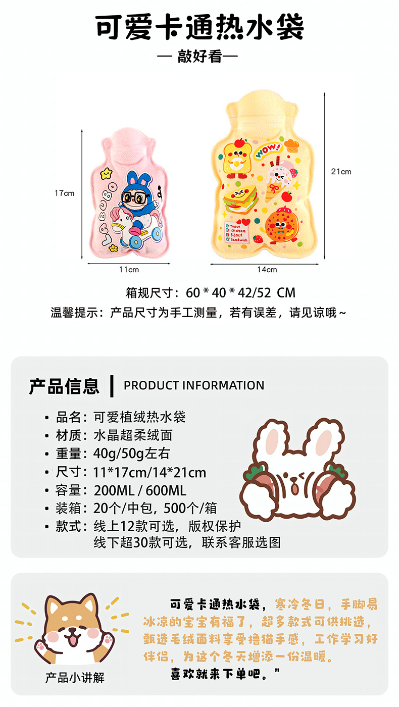 冬季卡通迷你热水袋注水可爱植绒小号暖水袋灌水暖肚子暖手袋批发