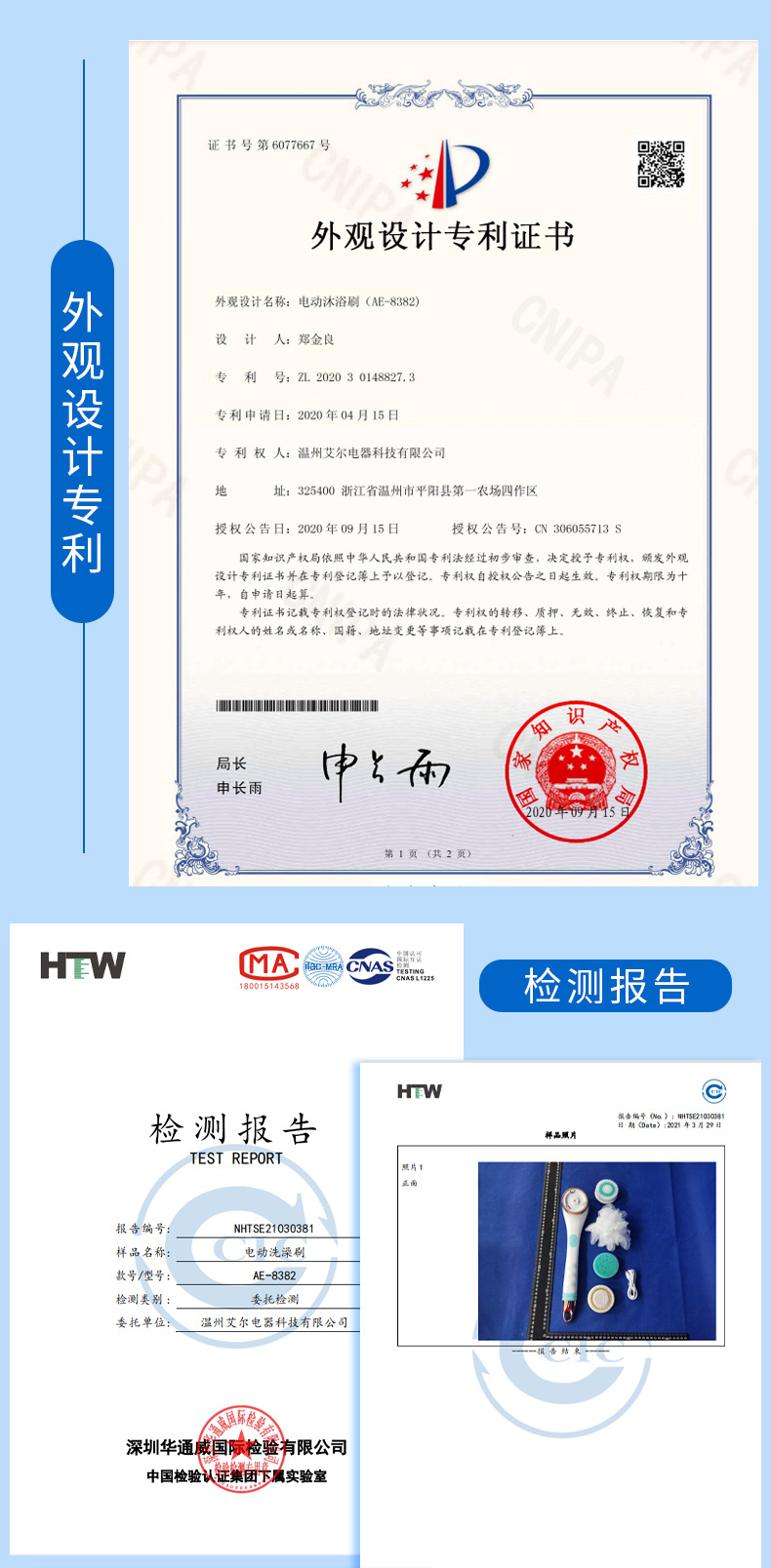 2.配置4种类型刷头,硅胶刷头,角质刷头,软毛刷头,浴花刷头,对应四种清洁模式。