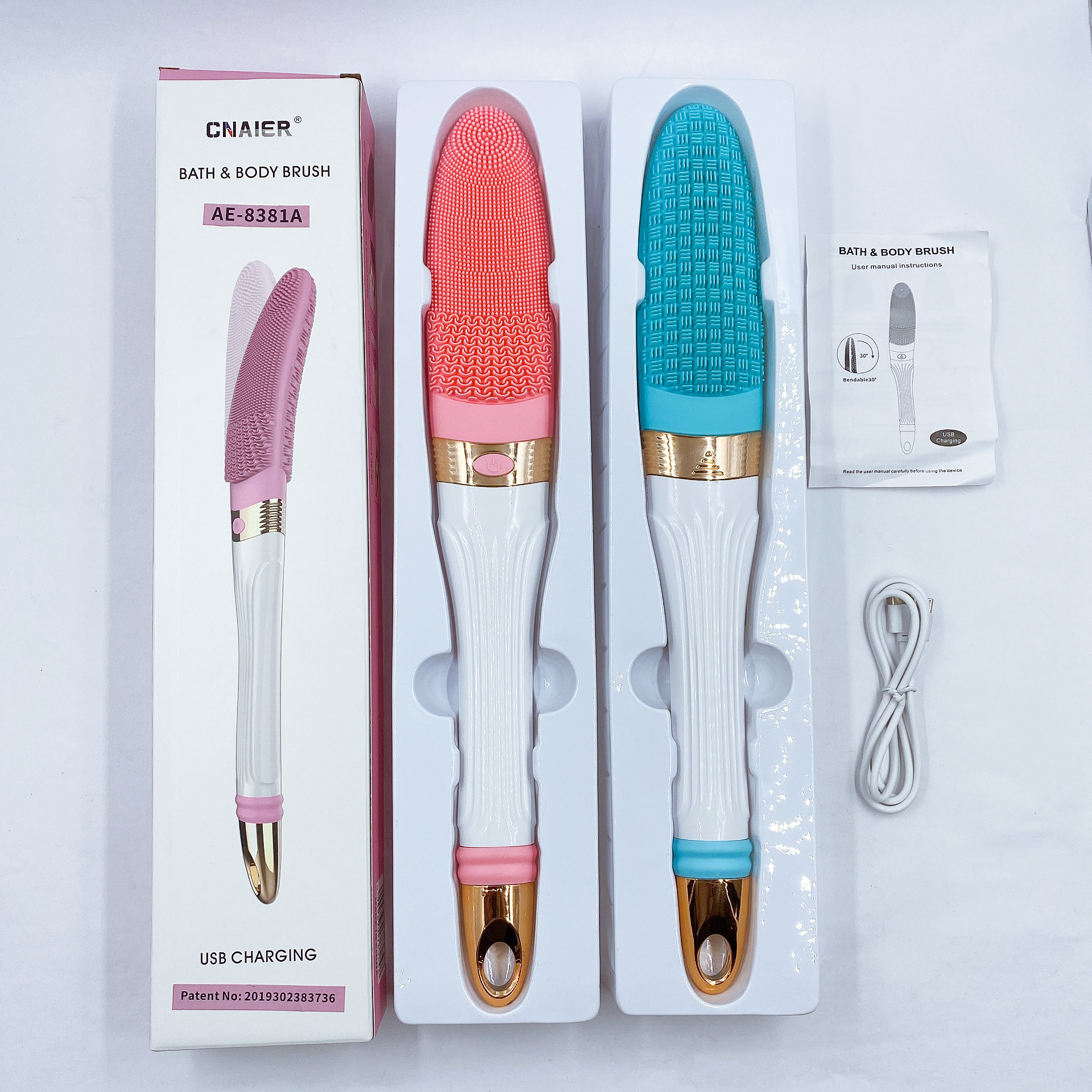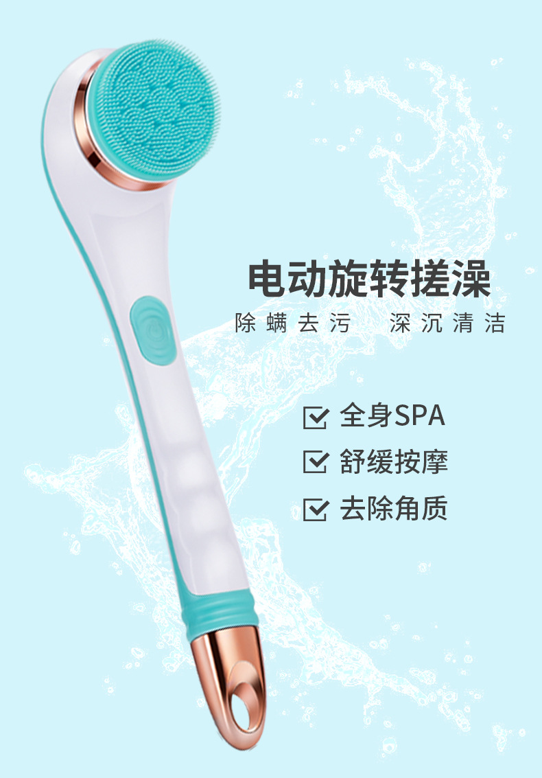 Электрическая щетка для душа с длинной ручкой, силиконовая массажная щетка, большой отшелушивающий инструмент, щетка для спины, фабричная отшелушивающая щетка.