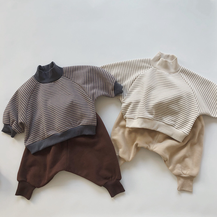 Корейская детская одежда зимний новый детский полувысокий воротник в полоску теплый свитер толстый японский и корейский стиль мужской и женский детский свитер