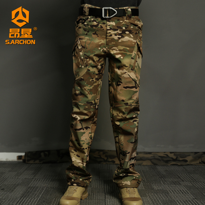 Мужские тактические брюки Angken из софтшелла на флисовой подкладке для осени и зимы, ветрозащитные брюки-карго в стиле милитари IX9, эластичные тренировочные брюки прямого кроя.