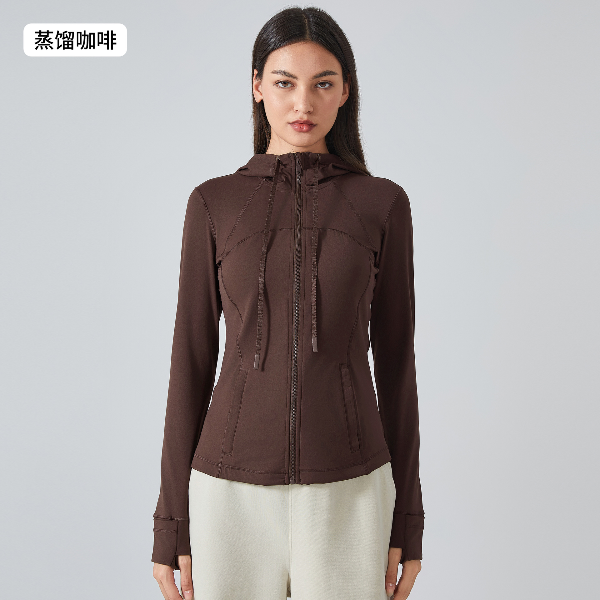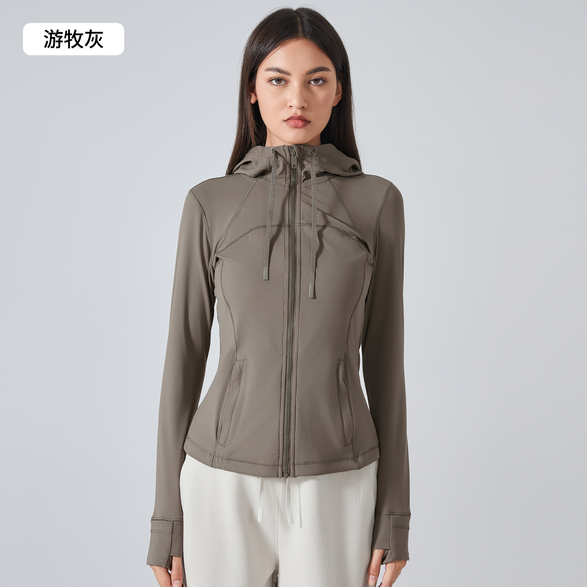 Трансграничные новые женские спортивные куртки с капюшоном женские стройные молнии эластичные беговые куртки для йоги S2088