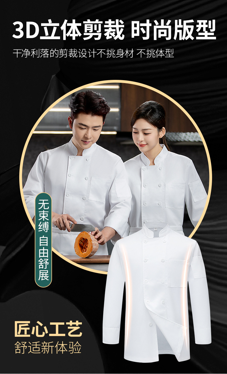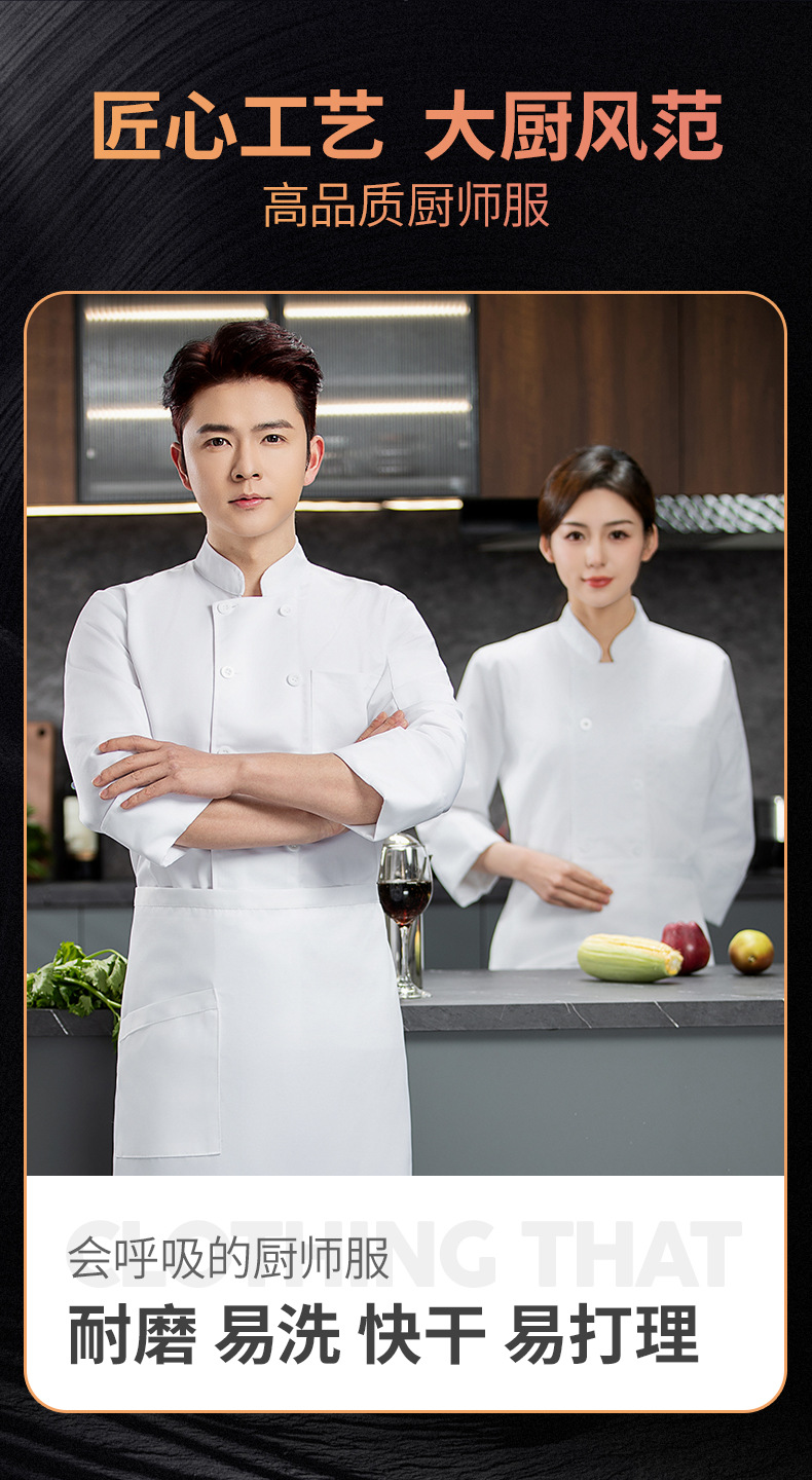 Чистая белая одежда для шеф-повара, рабочая одежда с длинными рукавами, осень-зима, французский ресторан в западном стиле, чистый цвет, износостойкий, легко моется с короткими рукавами
