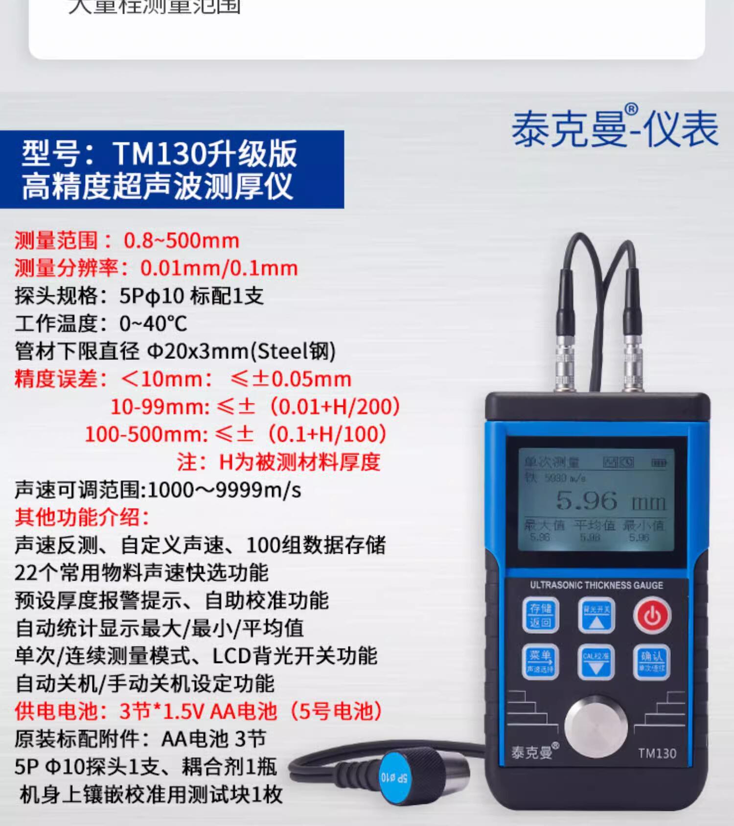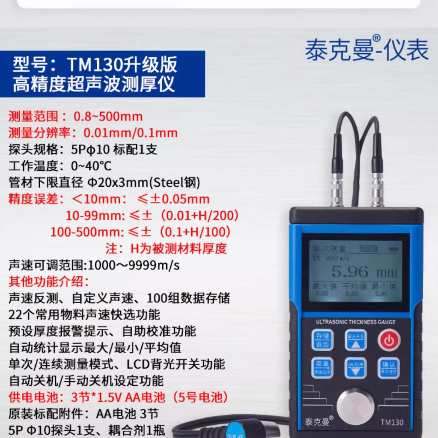 Ультразвуковой толщинометр TM130 Стальная пластина Железная пластина Медная пластина Стекло ПВХ трубы Металлический толщинометр