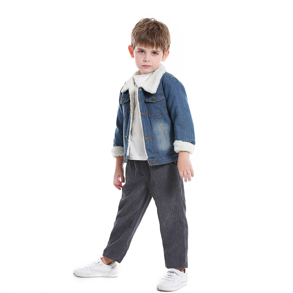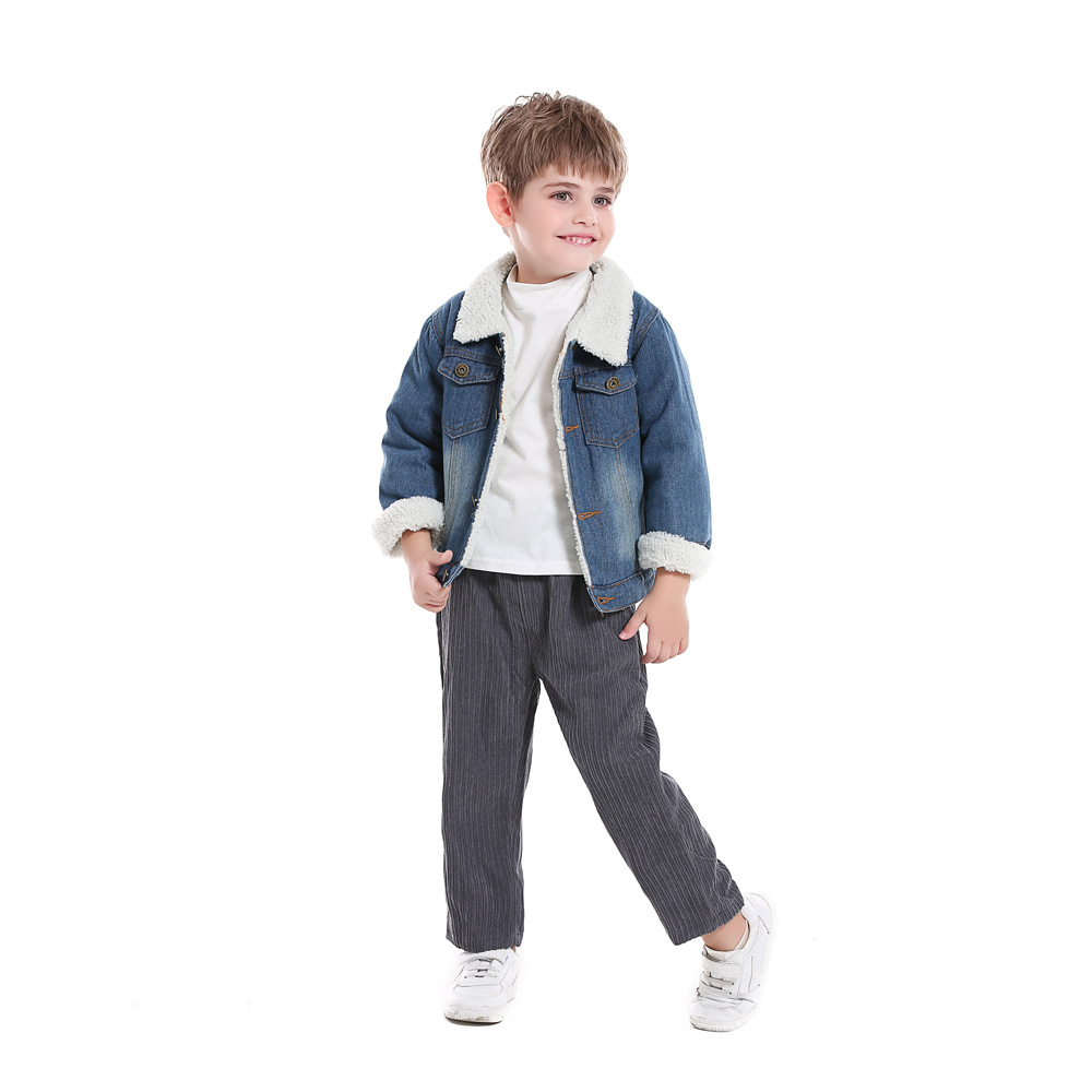 Детская одежда пальто осенне-зимние детские джинсы на флисовой подкладке для мальчиков и девочек Корейская теплая куртка Детский кардиган оптом