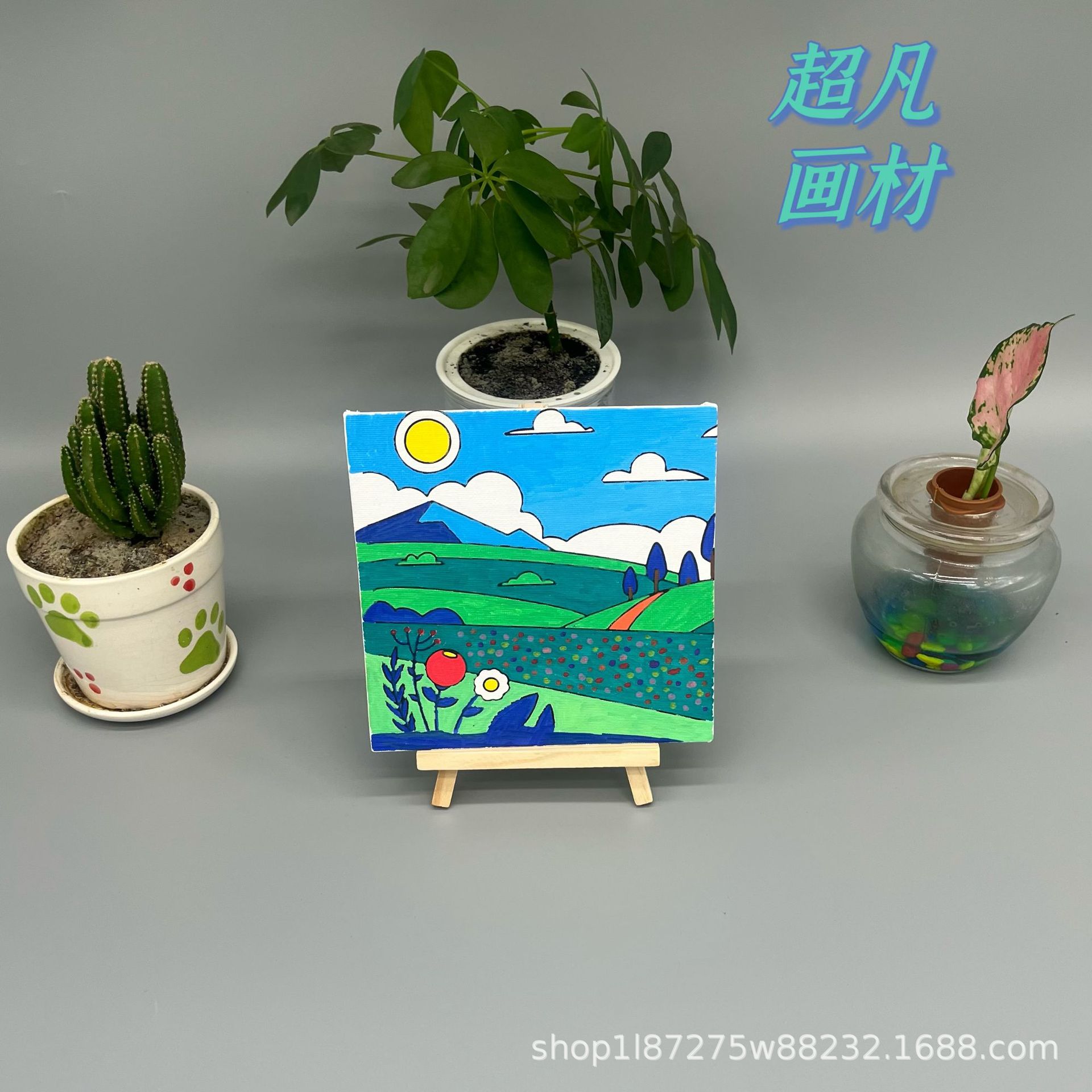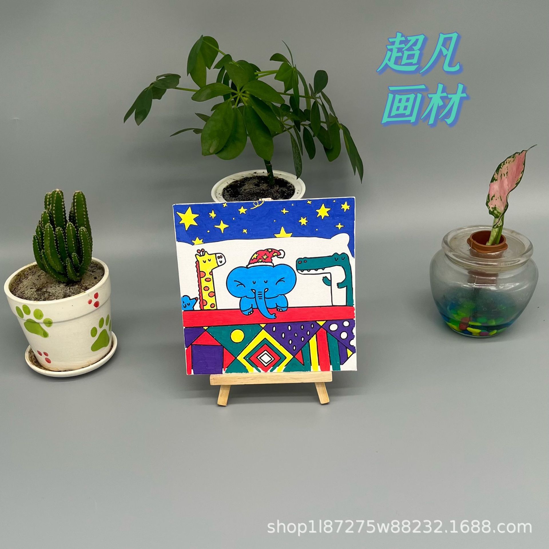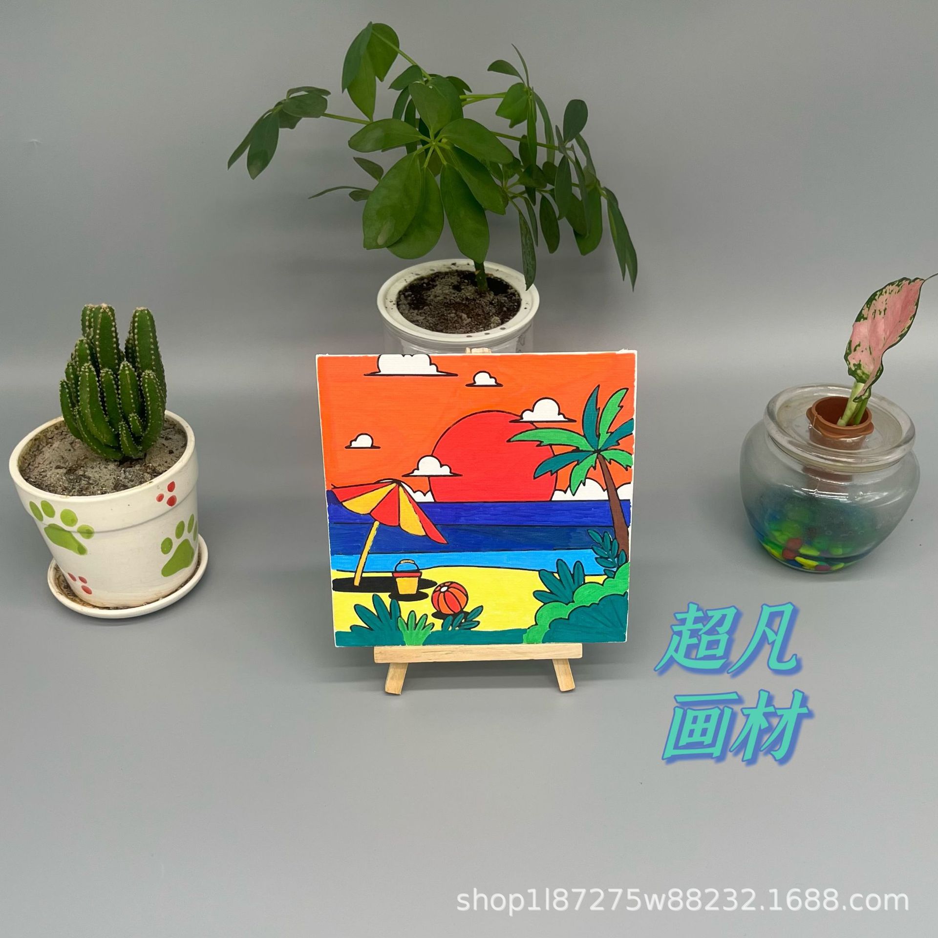 问答1:3.1元套装,含6色3ml颜料、2支画笔(平头、尖头)、11*19画架以及配套的15*15cm大小印图油画板