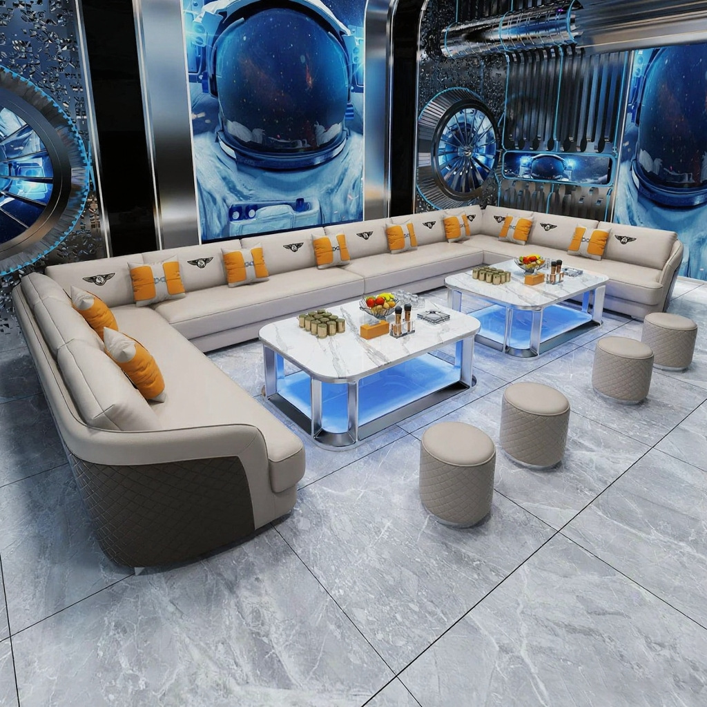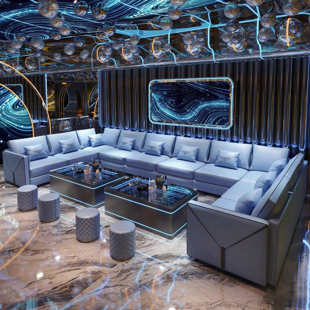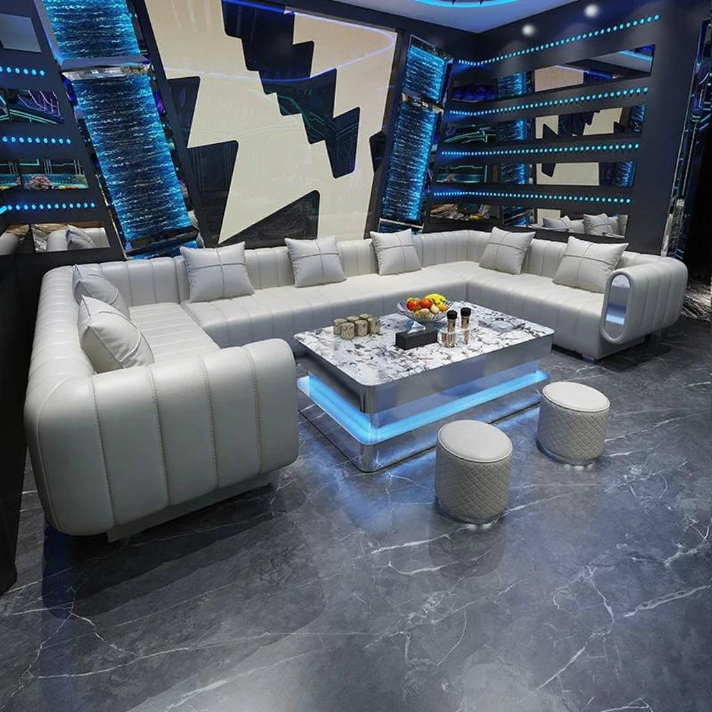 U-образный L-образный диван + кресло-подставка + светящийся журнальный столик + барная стойка