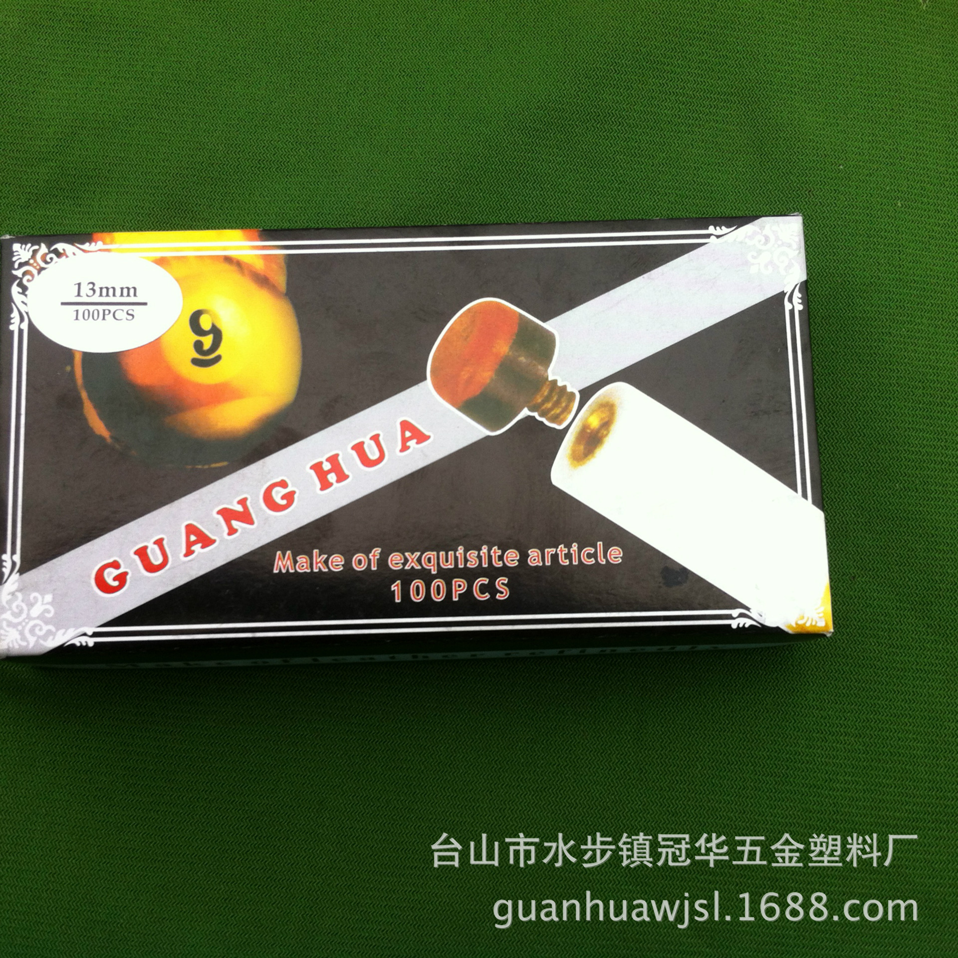 台山市水步镇冠华五金塑料厂是台球配件、台球用品等产品专业生产加工的公司,拥有完整、科学的质量管理体系。自一九九久年创立至今,坚持以讲诚信、重质量、求创新的经营理念为宗旨。台山市水步镇冠华五金塑料厂的诚信、实力和产品质量获得业界的认可。欢迎各界朋友莅临参观、指导和业务洽谈。
