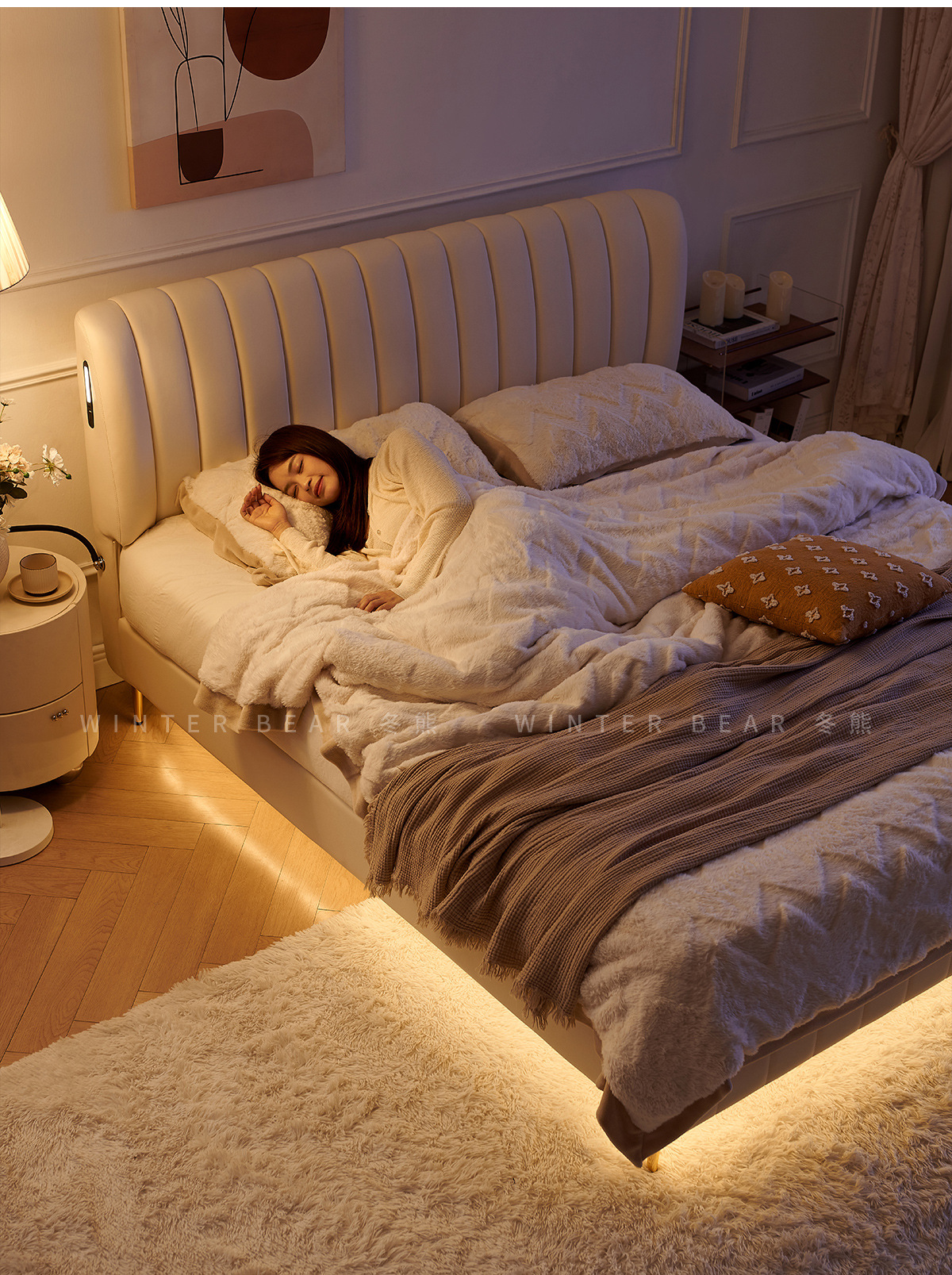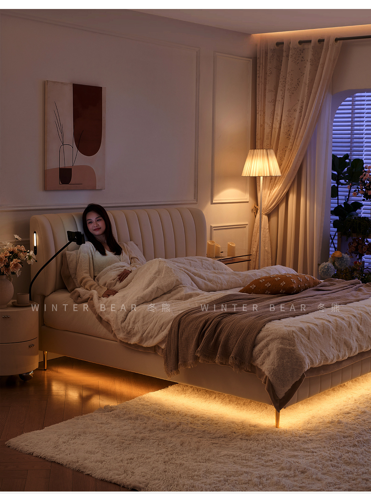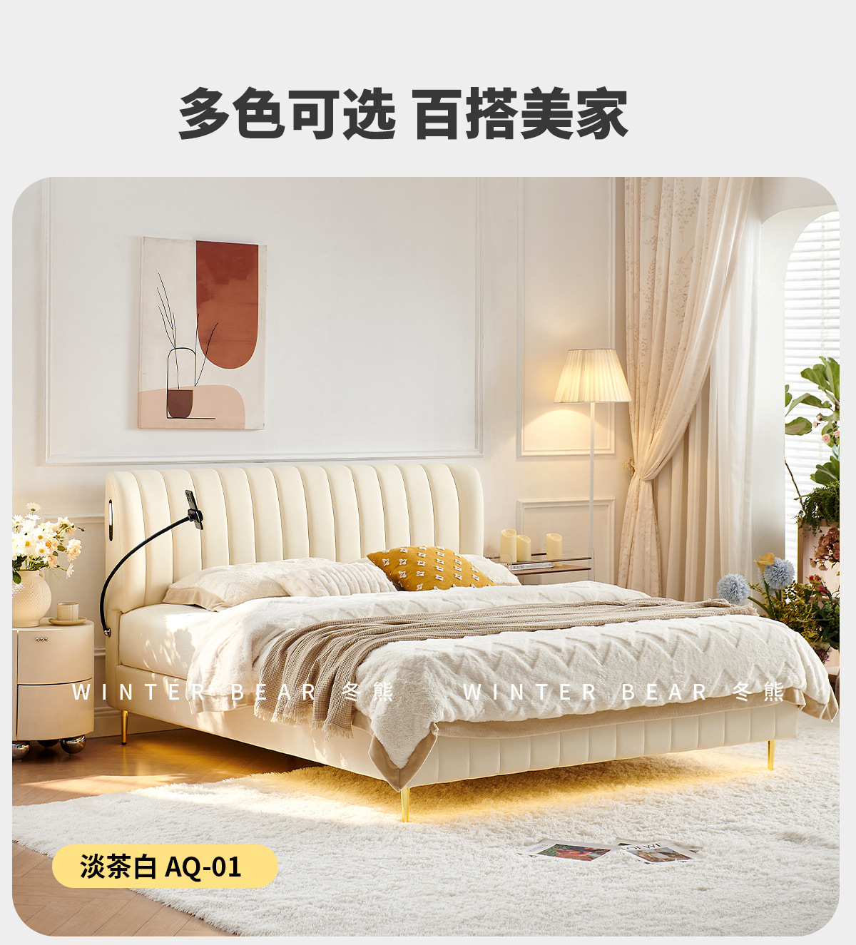 Легкая экстравагантная минималистская кожаная кровать Мягкая спальня 1,8 м Двойная кровать принцессы 1,5 Современная минималистская скандинавская тополая кожаная кровать