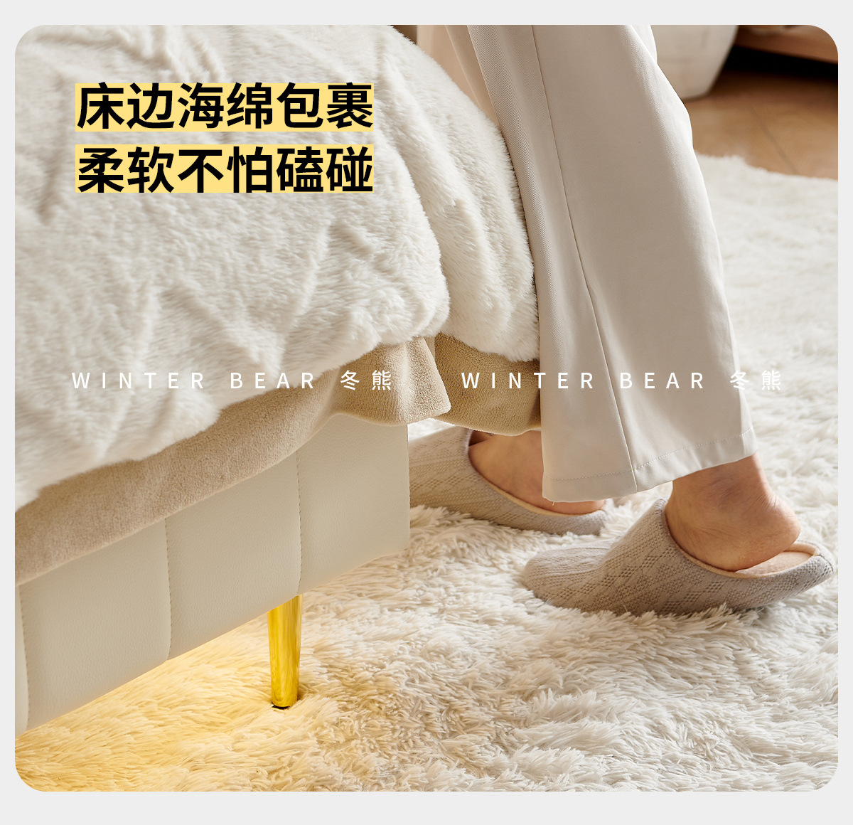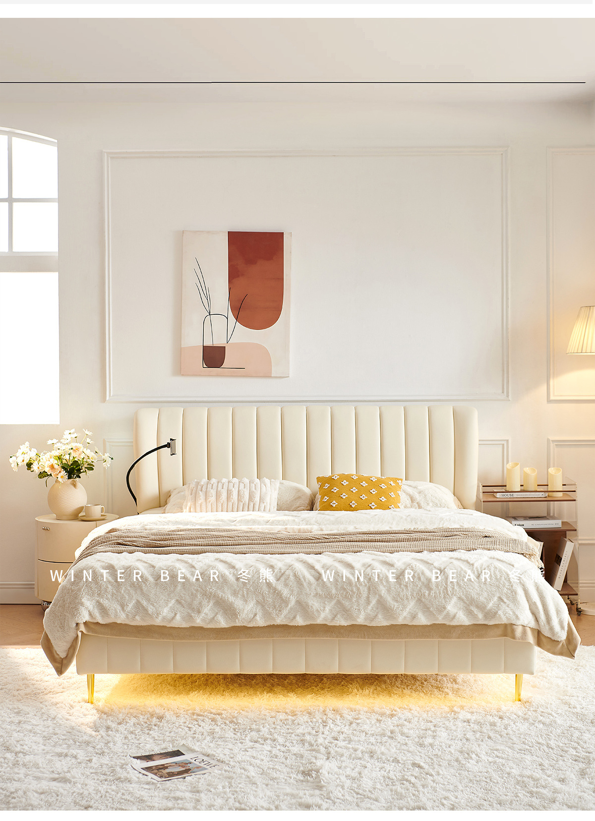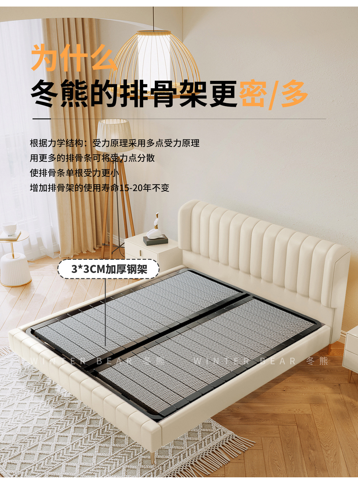 Легкая экстравагантная минималистская кожаная кровать Мягкая спальня 1,8 м Двойная кровать принцессы 1,5 Современная минималистская скандинавская тополая кожаная кровать