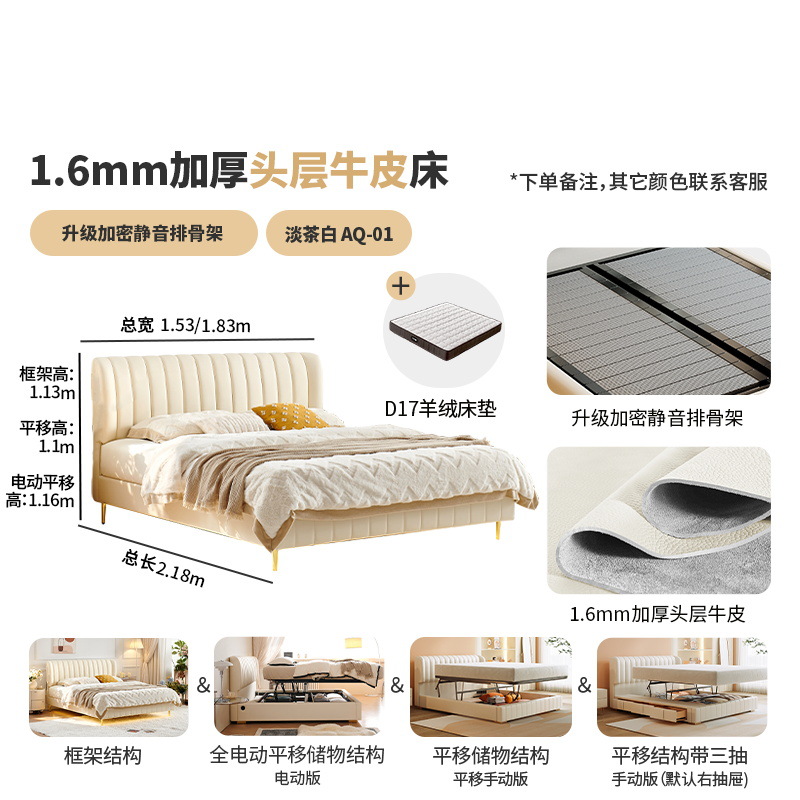 [12-доказательные свойства · Экологическая кожа Nappa с утолщением] Односпальная кровать [Модернизированная бесшумная рама]; Интеллектуальное обновление [Многофункциональный USB + держатель для мобильного телефона + подвесной сенсорный светильник] [12-доказательных функций · Утолщенная экологическая кожа напа] Кровать [Модернизированная бесшумная рама]; [12-доказательные свойства · Экологическая кожа Nappa с утолщением] Односпальная кровать [Зашифрованная бесшумная ребристая рама]; [Эко-кожа Nappa Thick] Кровать + матрас D17/шифрованная бесшумная рама; [Экокожа Napa Thick] Кровать + двухсторонний матрас Five-Star Tencel/зашифрованная бесшумная рама; Интеллектуальное обновление [Многофункциональный USB + держатель для мобильного телефона + подвесной сенсорный светильник] [12-доказательных функций · Утолщенная экологическая кожа напа] Кровать [Зашифрованная бесшумная рама]; [12-доказательные свойства · Утолщенная экологическая кожа напа] Односпальная кровать [Каркас из массива бука]; [Эко-кожа Nappa Thick] Кровать + Матрас D17 [Каркас из массива бука]; [Эко-кожа из плотной напы] Кровать + двухсторонний матрас Five-Star Tencel [Каркас из массива бука]; Интеллектуальное обновление [Многофункциональный USB + держатель для мобильного телефона + подвесной сенсорный светильник] [12-доказательных функций · Утолщенная экологическая кожа напа] Каркас кровати / массива дерева из бука; [Немецкое мастерство, первый слой воловьей кожи S-класса толщиной 1,6 мм] Односпальная кровать/модернизированная бесшумная рама; Интеллектуальное обновление [Многофункциональный USB + держатель для мобильного телефона + подвесной сенсорный светильник] [Утолщенная коровья кожа первого слоя] Кровать/улучшенные бесшумные ребра; [Толстый первый слой коровьей кожи] Односпальная кровать/зашифрованный бесшумный каркас; [Толстый первый слой коровьей кожи] Кровать + матрас D17/зашифрованный бесшумный каркас; [Толстый первый слой коровьей кожи] Кровать + двухсторонний матрас Tencel с пятью звездами/зашифрованный бесшумный каркас; Интеллектуальное обновление [Многофункциональный USB + держатель для мобильного телефона + подвесной сенсорный светильник] [утолщенная коровья кожа первого слоя толщиной 1,6 мм] кровать/зашифрованная бесшумная рама; [Утолщенная коровья кожа первого слоя] Односпальная кровать/каркас из цельного дерева из бука; [Толстый первый слой коровьей кожи] кровать + матрас D17/каркас из цельного бука; [Толстый первый слой коровьей кожи] Кровать + двухсторонний матрас Tencel с пятью звездами/рама из цельного дерева из бука; Интеллектуальное обновление [Многофункциональный USB + держатель для мобильного телефона + подвесной сенсорный светильник] [Утолщенная коровья кожа первого слоя] Каркас кровати / массива дерева из бука; [Импортированная коровья кожа первого слоя напа] Односпальная кровать/улучшенная бесшумная рама; Интеллектуальное обновление [Многофункциональный USB + держатель для мобильного телефона + подвесной сенсорный светильник] [Импортированная коровья кожа первого слоя Napa] Кровать/модернизированная бесшумная рама; [Импортированная коровья кожа первого слоя из Напа] Односпальная кровать/зашифрованная бесшумная рама; [Наппа первого слоя из воловьей кожи] кровать + матрас D17/шифрованная бесшумная рама; [Наппа первого слоя из воловьей кожи] кровать + пятизвездочный матрас Tencel/зашифрованный бесшумны
