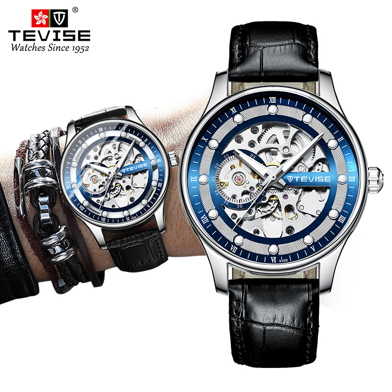 Новинка: оптовый поставщик часов для трансграничной торговли, часы с кожаным ремешком, модные мужские механические часы, популярные часы для прямых трансляций TikTok, светящиеся в темноте