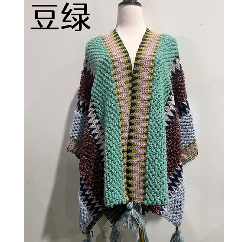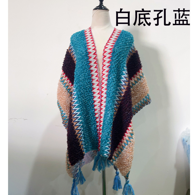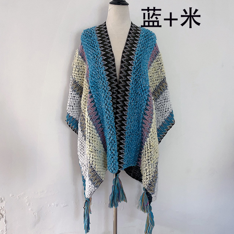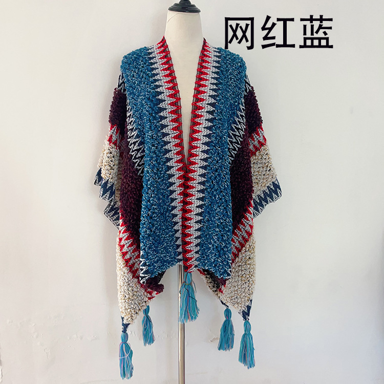 Вязаная шаль-накидка-кардиган, пальто, женская осенне-зимняя подвесная шаровая Толстая вязаная полосатая накидка в этническом стиле Лицзян