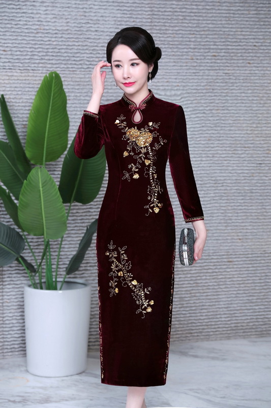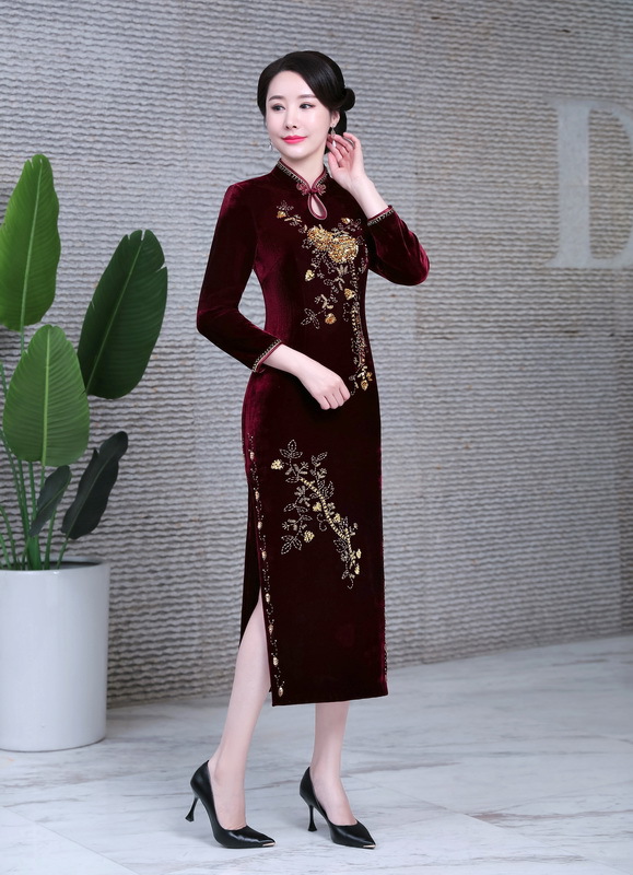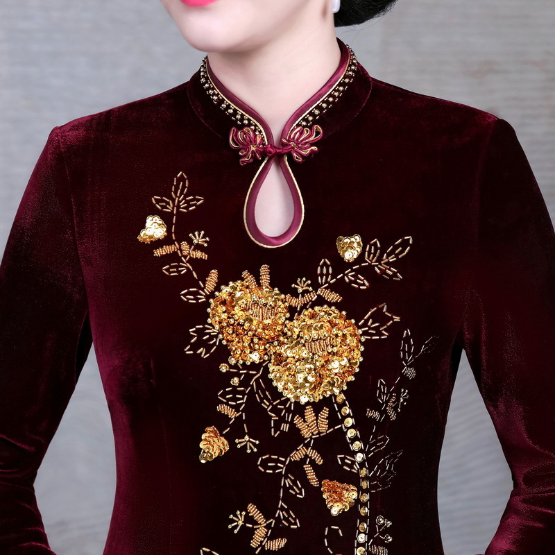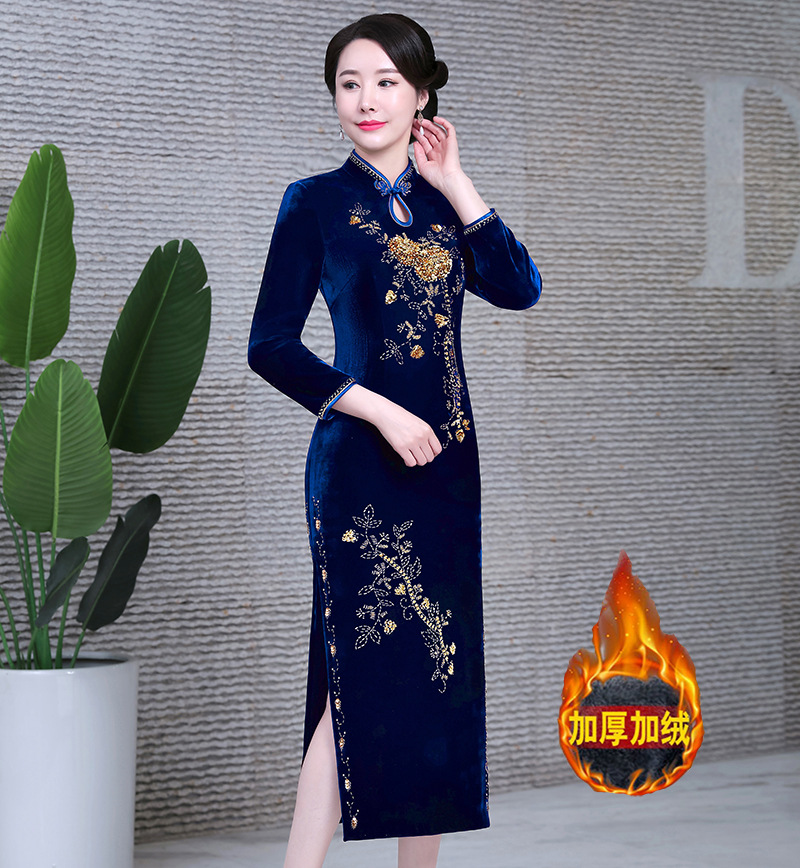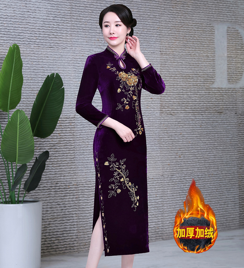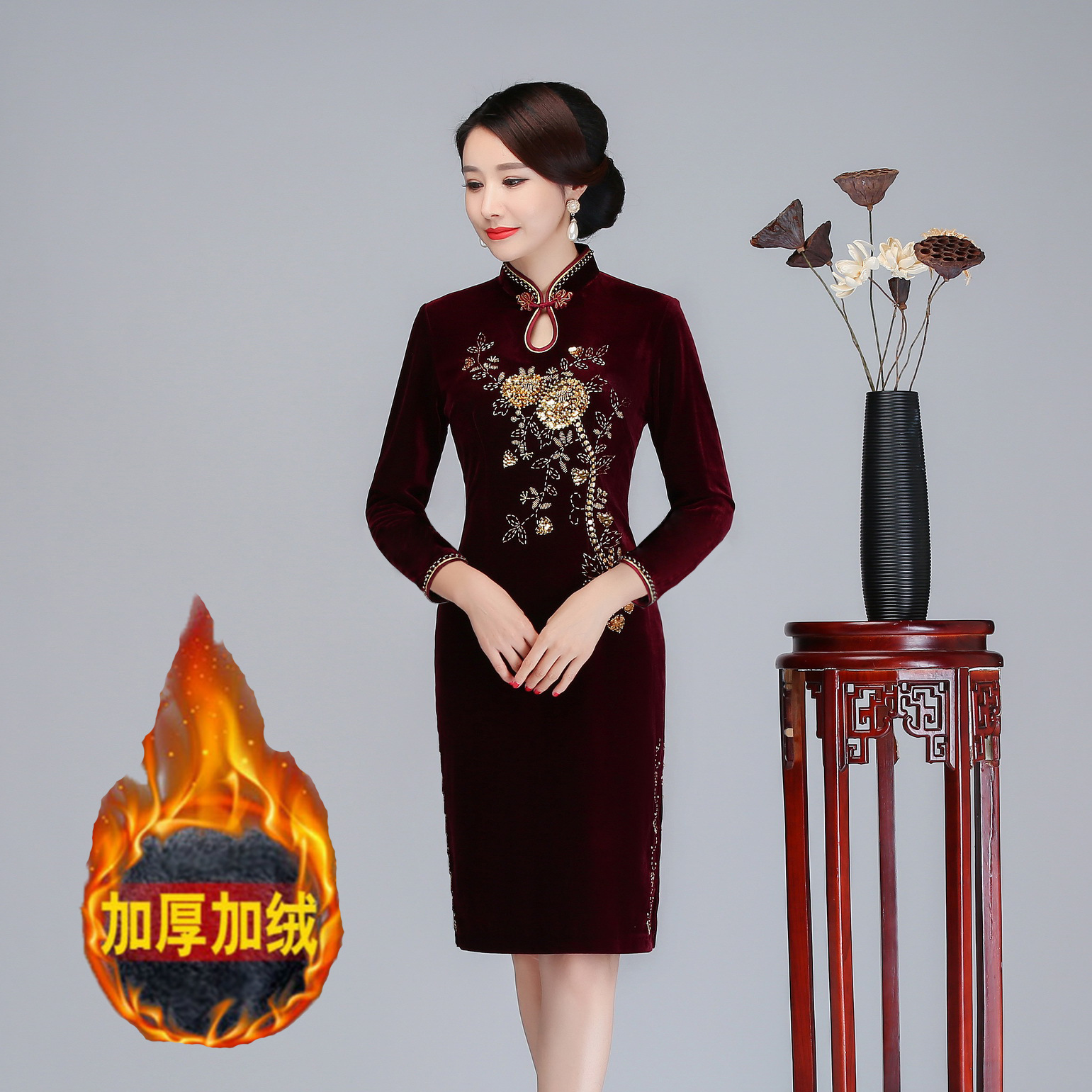 Утолщенный бархатный Чонсам на флисовой подкладке, улучшенный винтажный Чонсам с бисером, Новинка осени и зимы 2020, женская одежда больших размеров