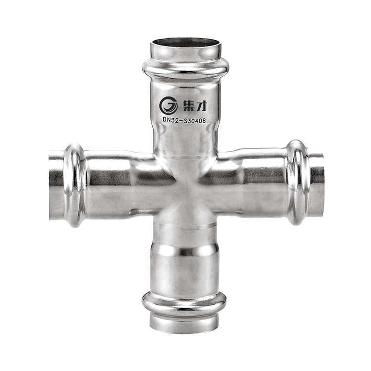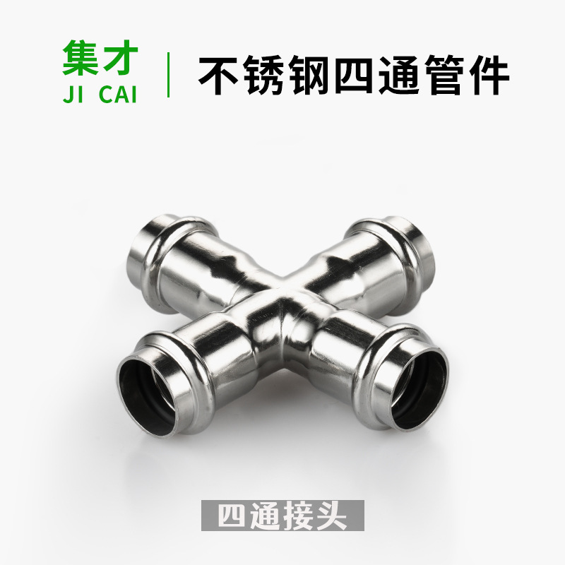 一件代发卡压式dn不锈钢四通 给水管供水接头304不锈钢四通