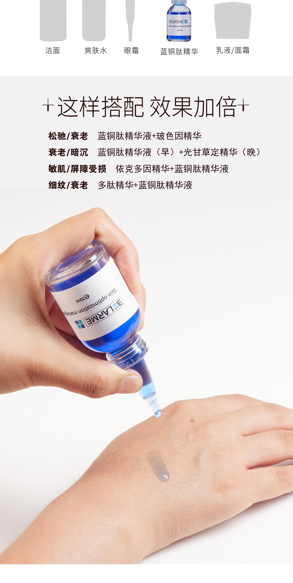 Аутентичная эссенция с высококонцентрированным 1% пептидом голубой меди для лифтинга и борьбы с морщинами, эксклюзивно для использования в клиниках, эссенция с пептидом голубой меди для сияющей кожи.