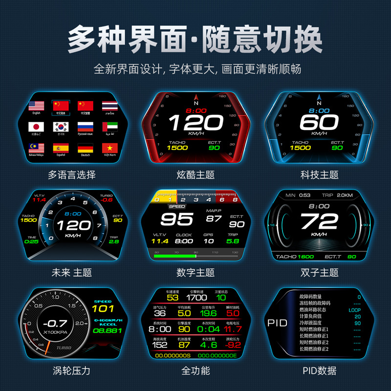 唯颖智能P17液晶显示屏obd2汽车电脑检测仪车载hud抬头显示器厂家