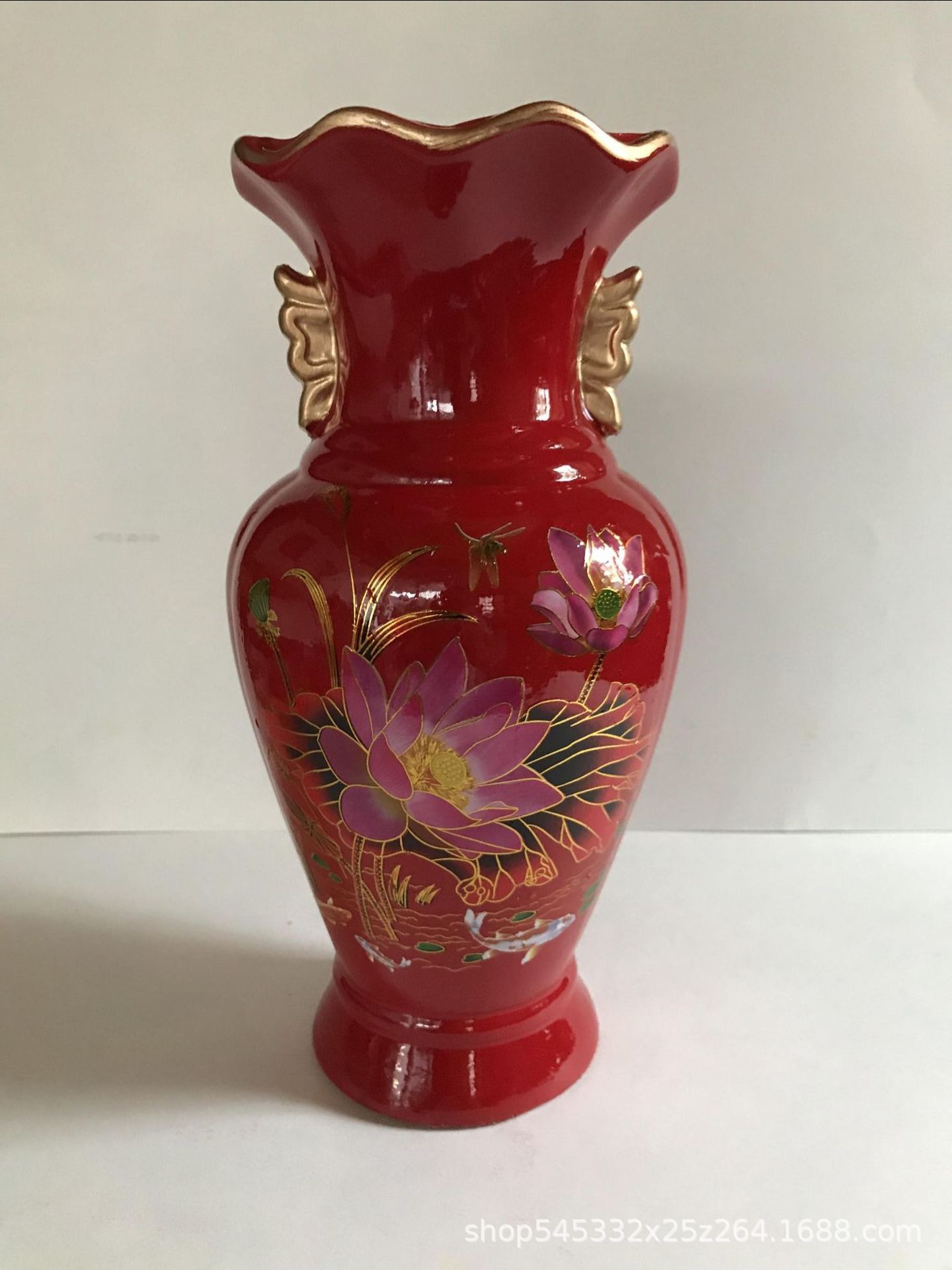 Китайская красная китайская керамическая ваза Свадебные украшения Будда поставляет гостиную утварь для цветочной композиции