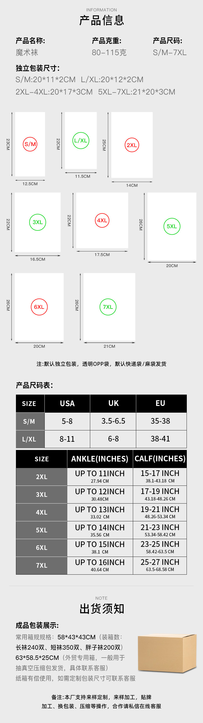 S/M; L/XL; 2XL; 3XL; 4XL; 5XL; 6XL; 7XL