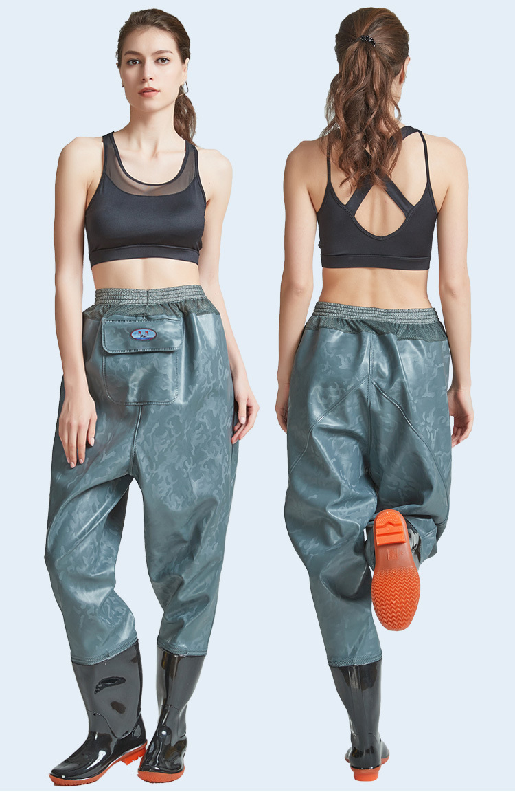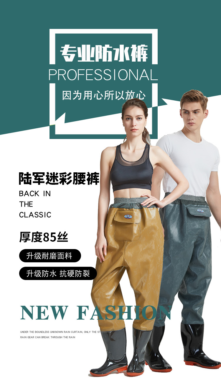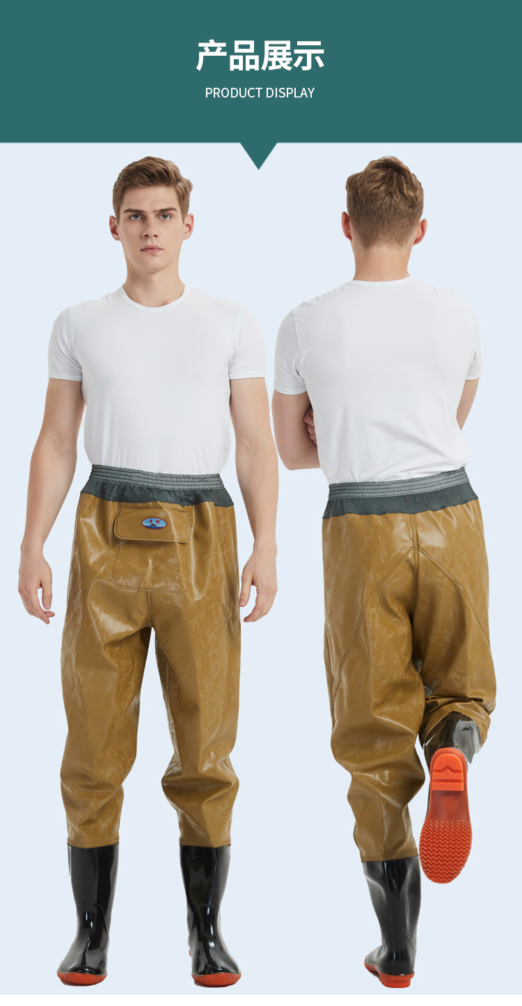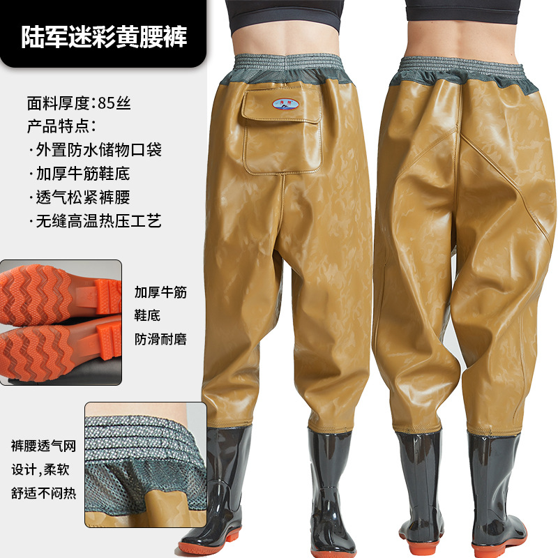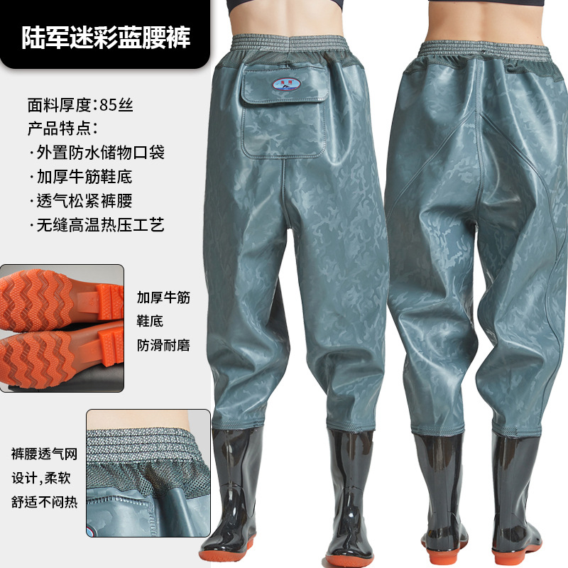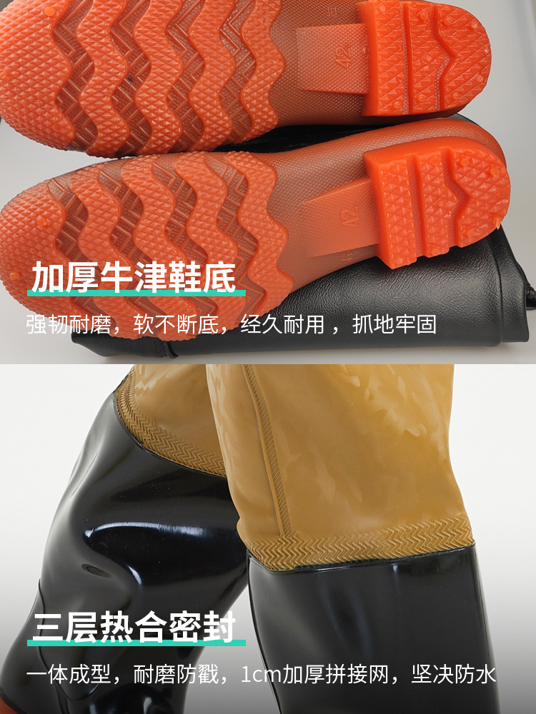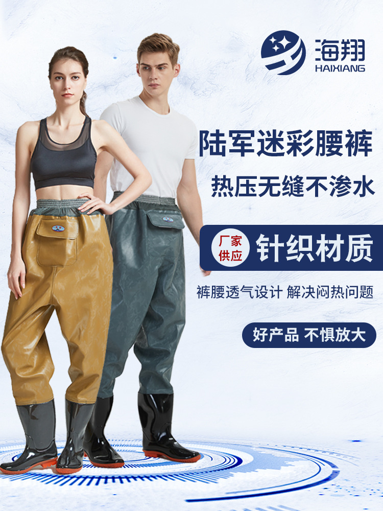 Водонепроницаемый костюм Haixiang: полукомбинезон, одежда до талии, дождевые штаны с сапогами, кожаный вейдерс для рыбалки, цельный утолщенный водонепроницаемый костюм для мужчин для работы на водоемах.