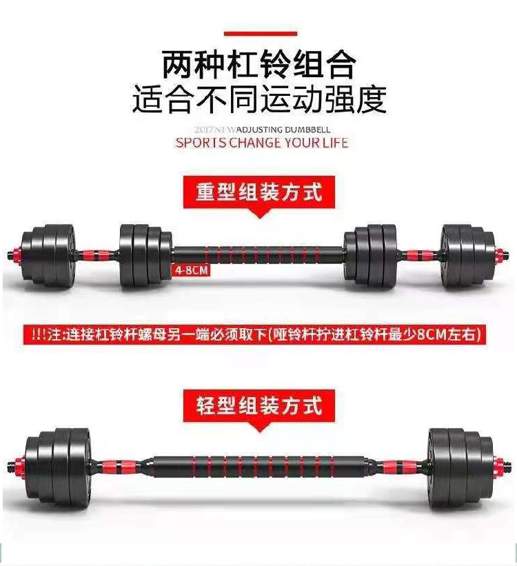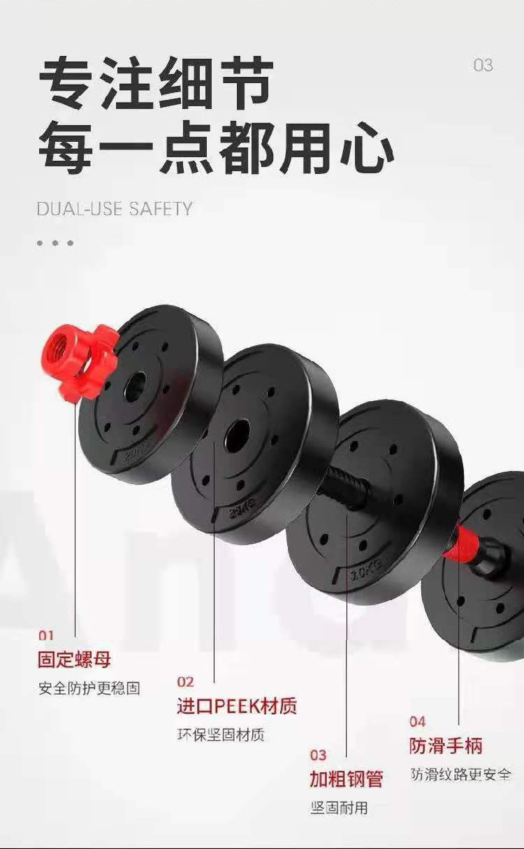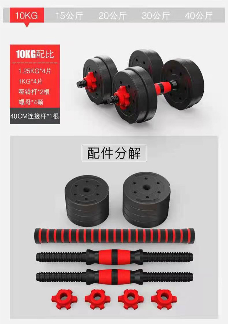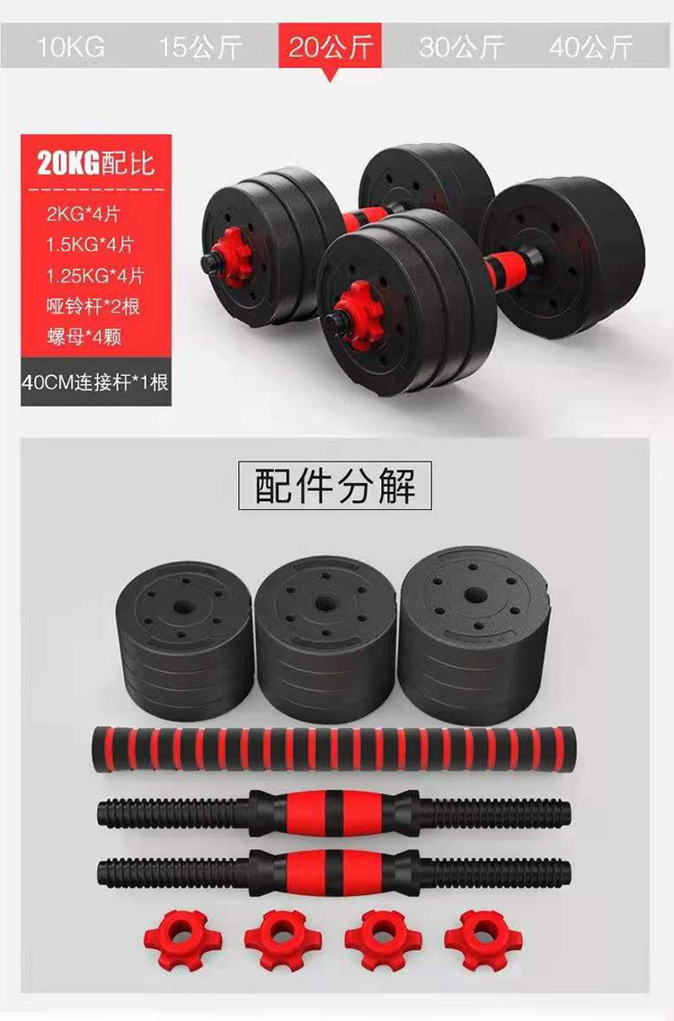 Мужское оборудование для гантелей для фитнеса Пластиковый цементный наполнитель Бытовая многофункциональная регулируемая по весу гантели Разборка штанги