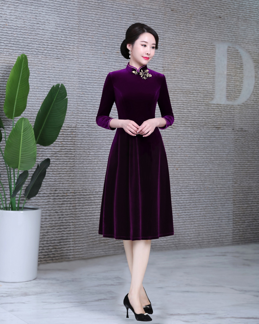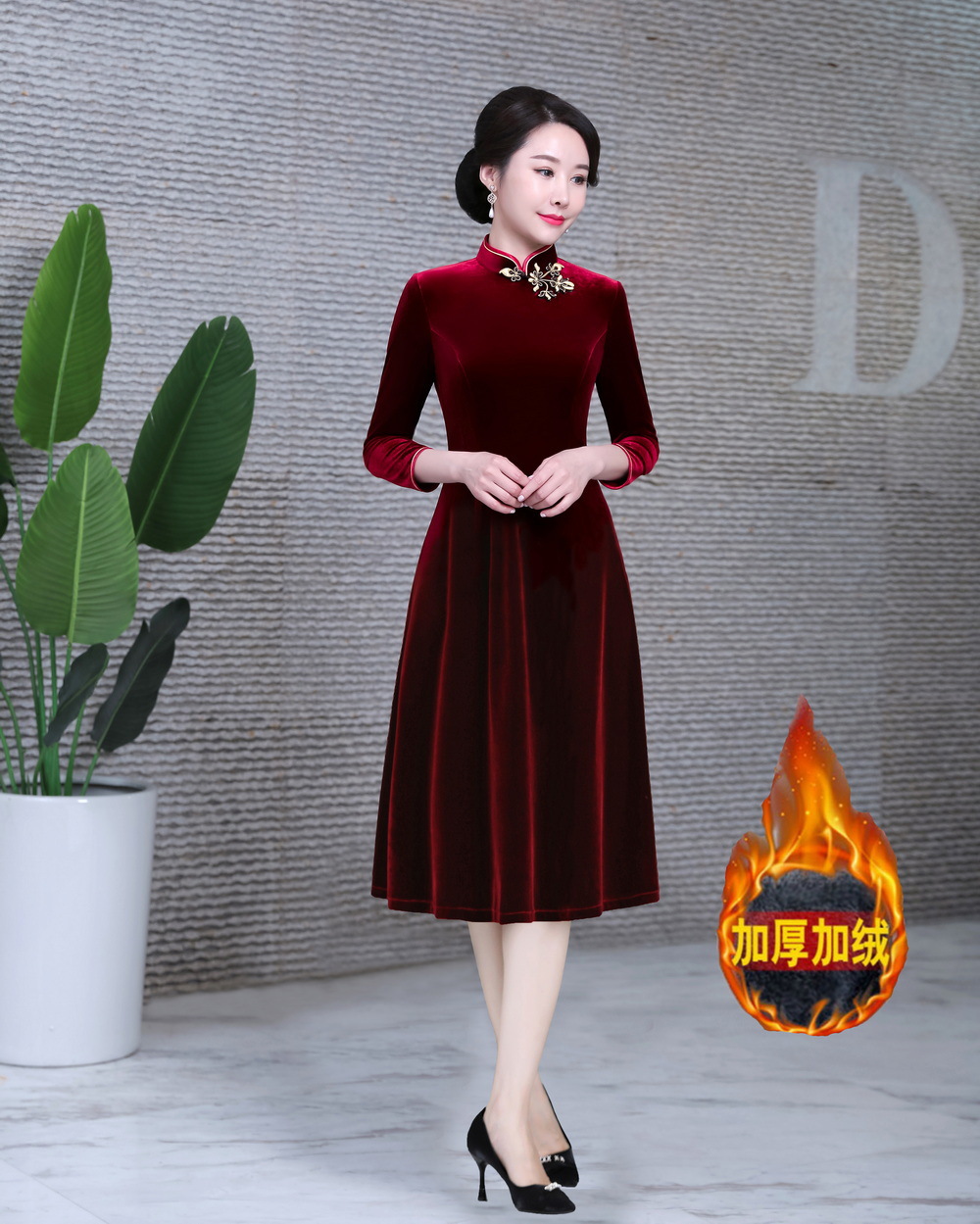 Новое улучшенное платье-ципао в стиле ретро из корейского бархата с длинными рукавами и широкой юбкой для молодых женщин, удлиненный крой, коллекция Осень/Зима 2025