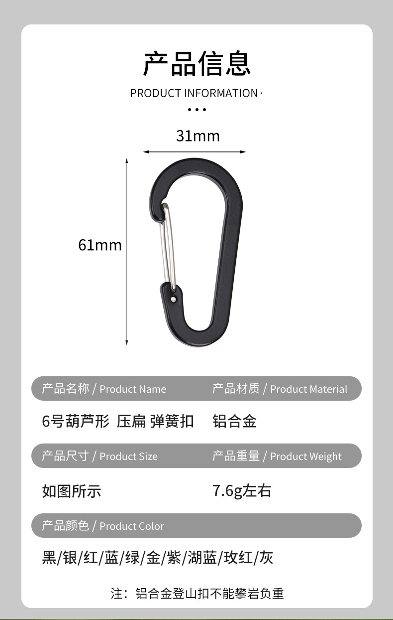 Оптовая продажа от производителя: Карабин для альпинизма из алюминиевого сплава, плоский, S-образный, №6, с пружинным замком, для активного отдыха, с крюком для стальной тросовой эластичной веревки