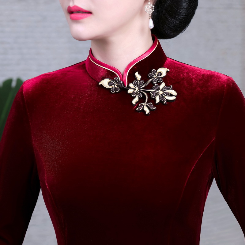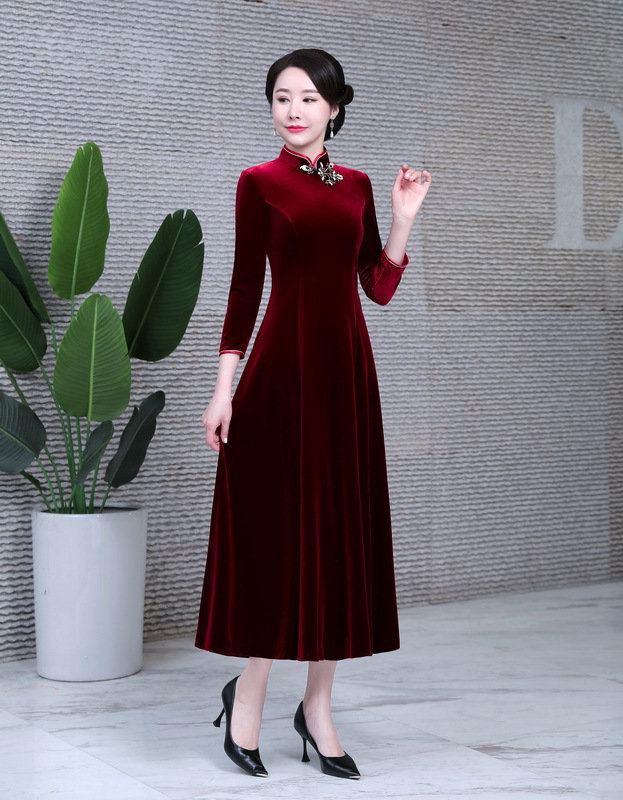 На флисовой подкладке 2023 осень-зима новое улучшенное корейское бархатное платье Чонсам в стиле ретро большое свободное платье молодое длинное