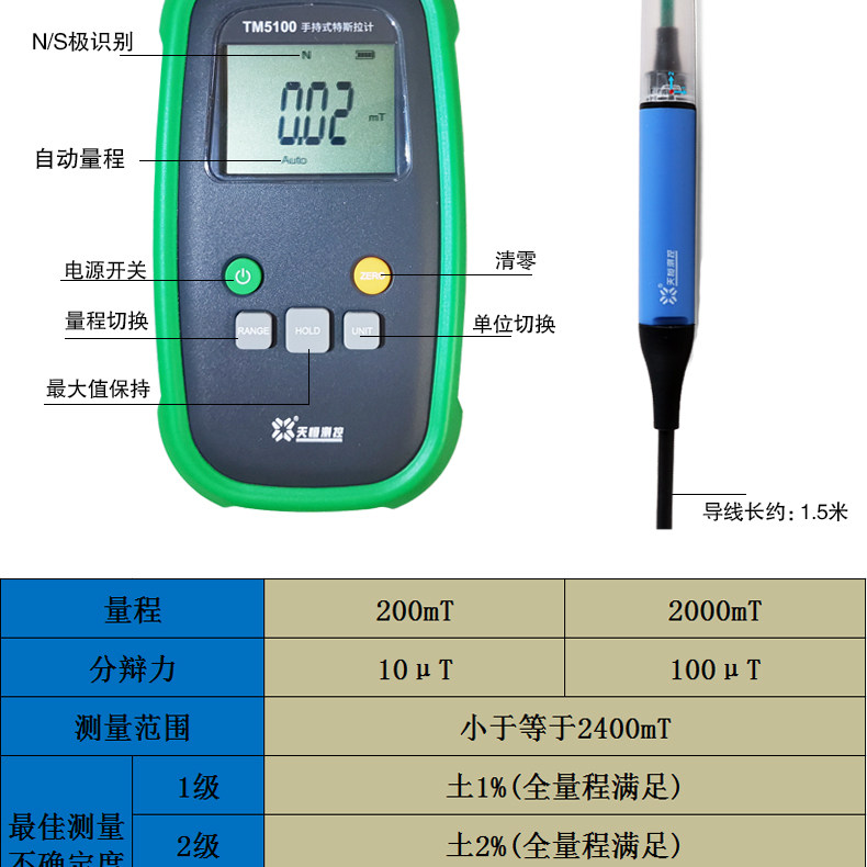 Гауссметр Tianheng Измерение и контроль TM5100 портативный Тесламетр Магнитный тест постоянный магнит Обнаружение остаточного магнита