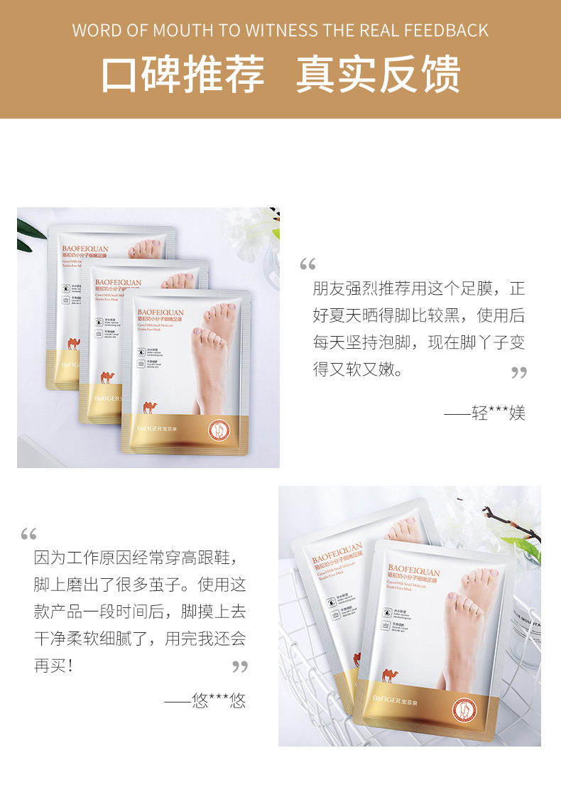 Baofei Spring верблюжья молочная пленка для ног Увлажняющая роговая маска для ног Средства по уходу за ногами Оптовая продажа