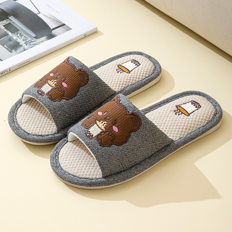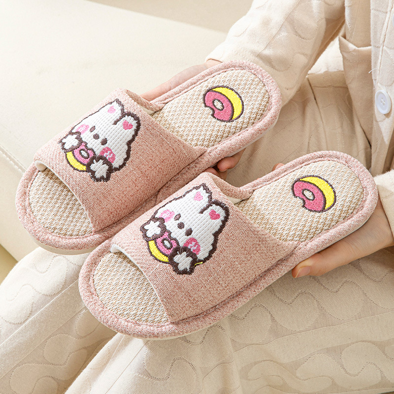 2024, новые льняные женские тапочки с героями мультфильмов, дышащие фабричные домашние мужские тапочки с деревянным полом для дома, оптом