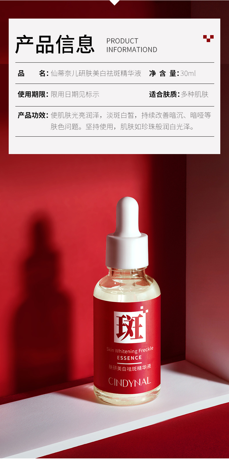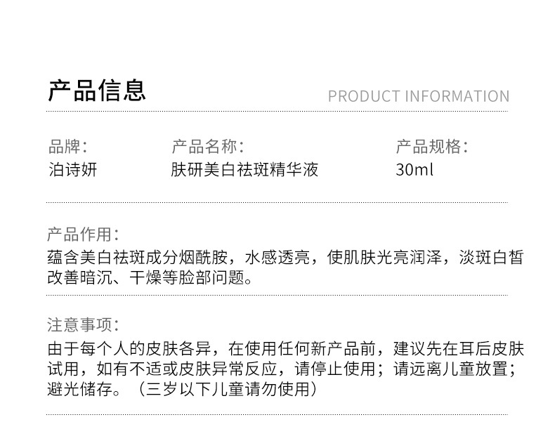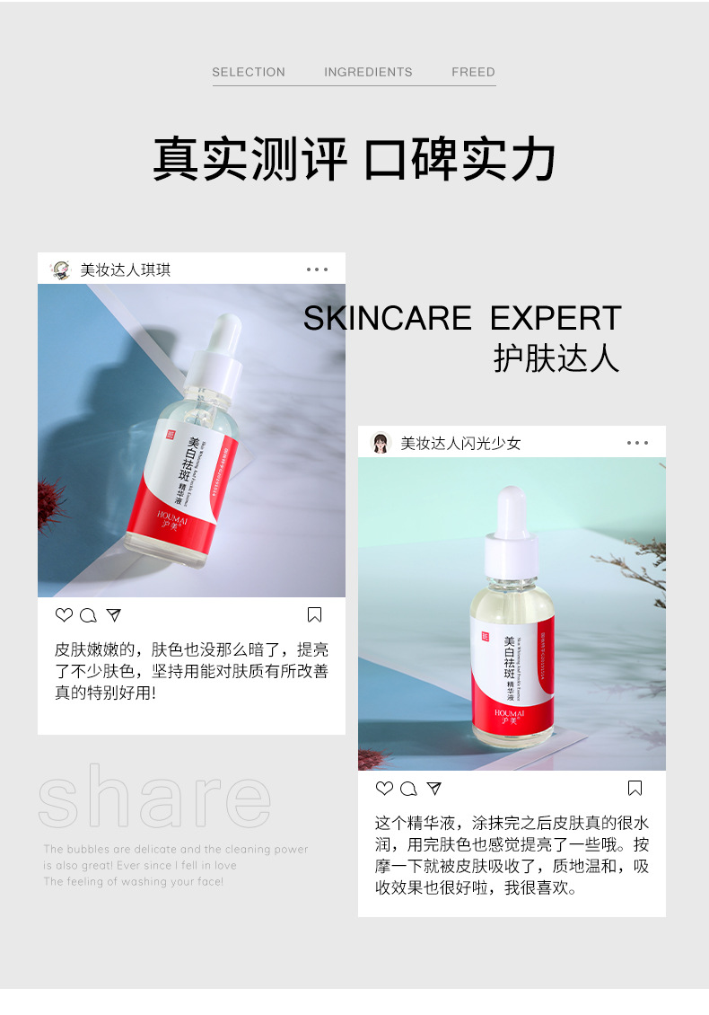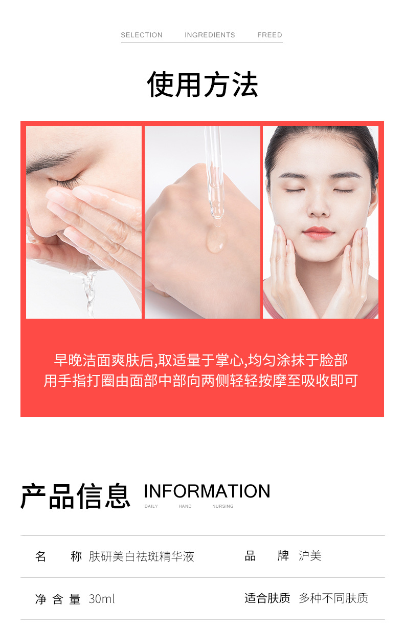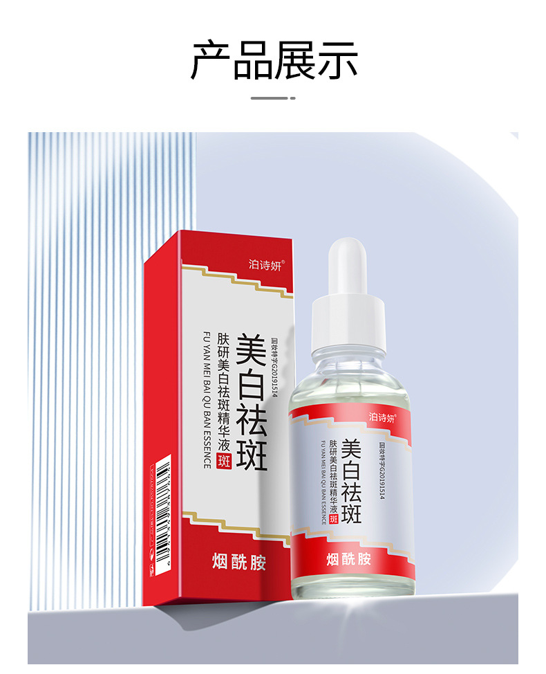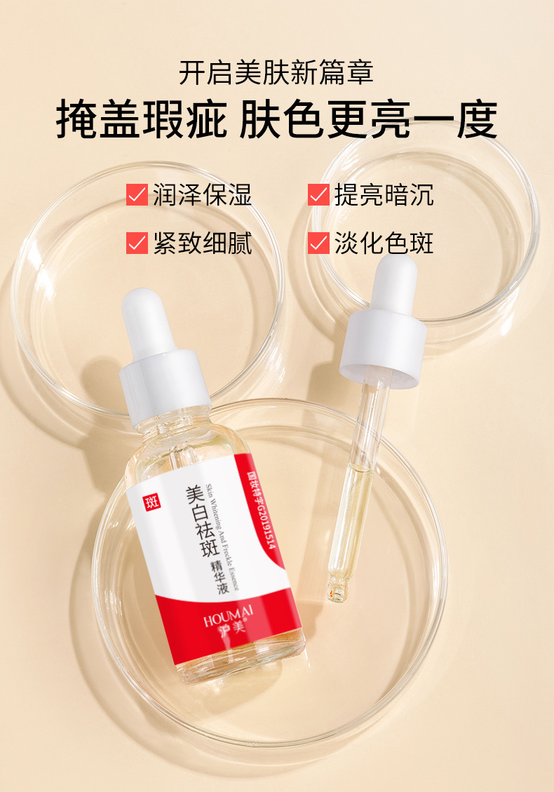Увлажняющая отбеливающая и против веснушек эссенция 30м; Эссенция для отбеливания кожи и против веснушек 30 мл; Bodie Отбеливающая и противовеснушечная эссенция для кожи 30 мл; Whsa отбеливающая и противовеснушечная эссенция для кожи 30 мл; BEOTUA Шестипептидная эссенция против морщин (новая) 30 мл; Отбеливающая и противовеснушечная эссенция Sentinel 30 мл; Humei Отбеливающая и противовеснушечная эссенция для кожи 30 мл; Отбеливающая и противовеснушечная эссенция Sentinel 30 мл; Humei Fukken Отбеливающая и противовеснушечная эссенция 50 мл; KISSMWAH Отбеливающая и противовеснушечная эссенция для кожи 100 мл; Увлажняющая отбеливающая и против веснушек эссенция 1,5 мл × 5 флаконов; Отбеливающая кожа и эссенция против веснушек Goddess Skin Research Edition 1,5 млX10 флаконов; Отбеливающая кожа и эссенция против веснушек желтого и белого цвета, 2 мл * 5 флаконов