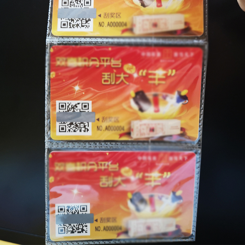 ПВХ-карта с защитой от подделок и скретч-покрытием, QR-код для проверки подлинности, защитный стикер, мелованная бумага, уникальная призовая карта с скретч-слойом.