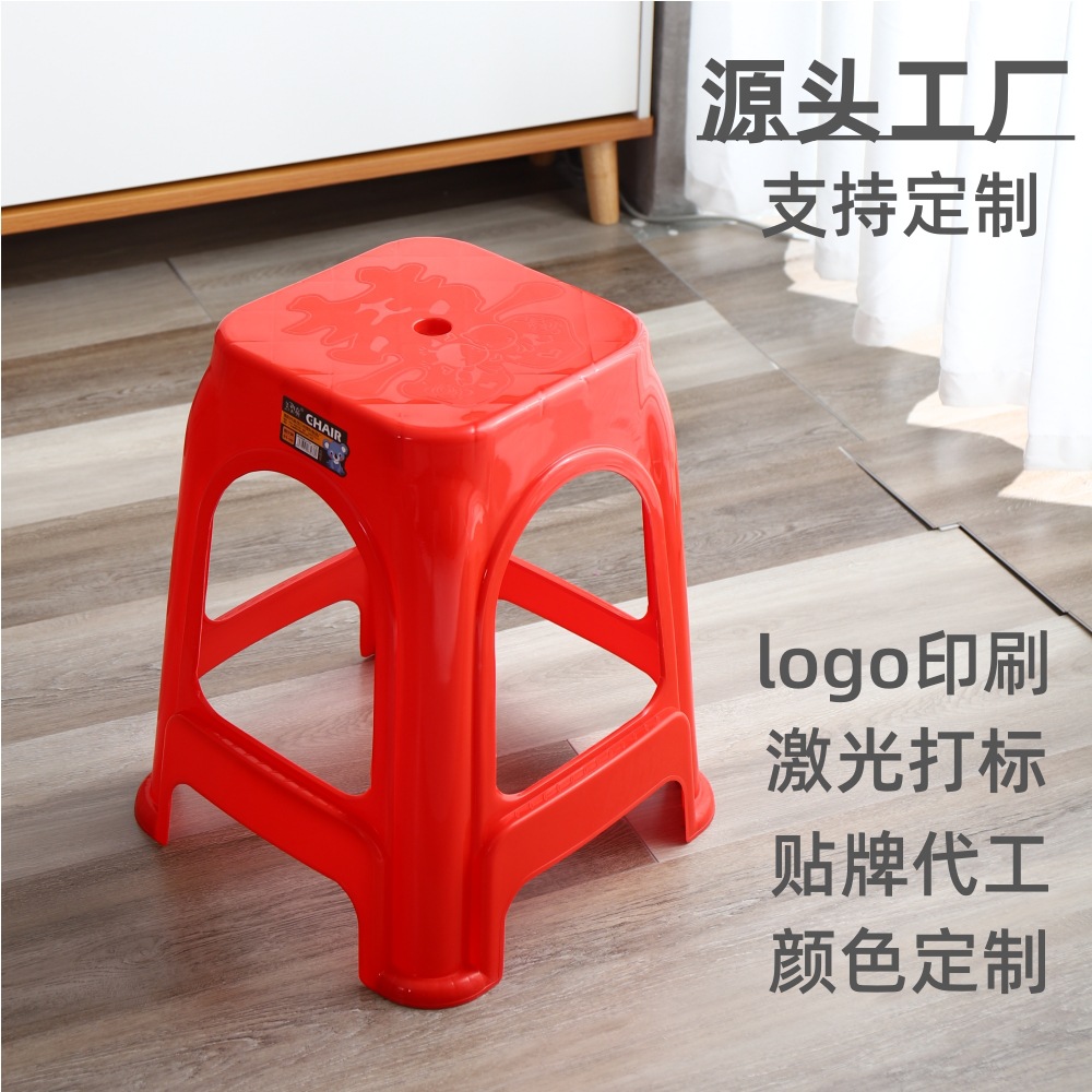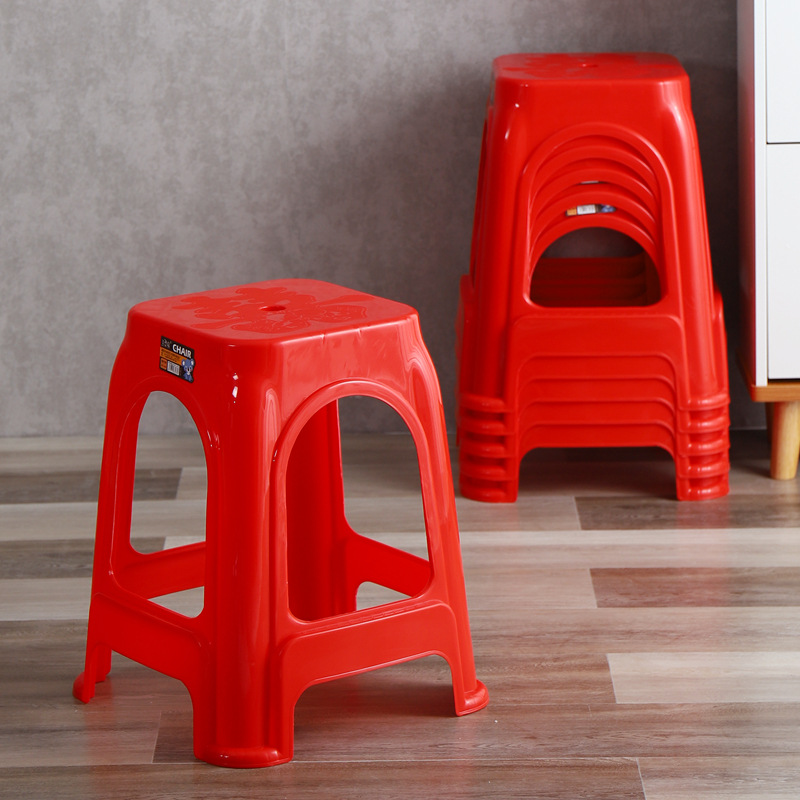 Пластиковый стул Бытовой утолщенный стул для взрослых Красный высокий стул Штабелируемый стул Квадратный стул Пластиковый стул оптом