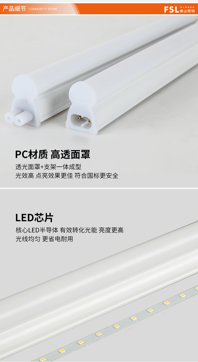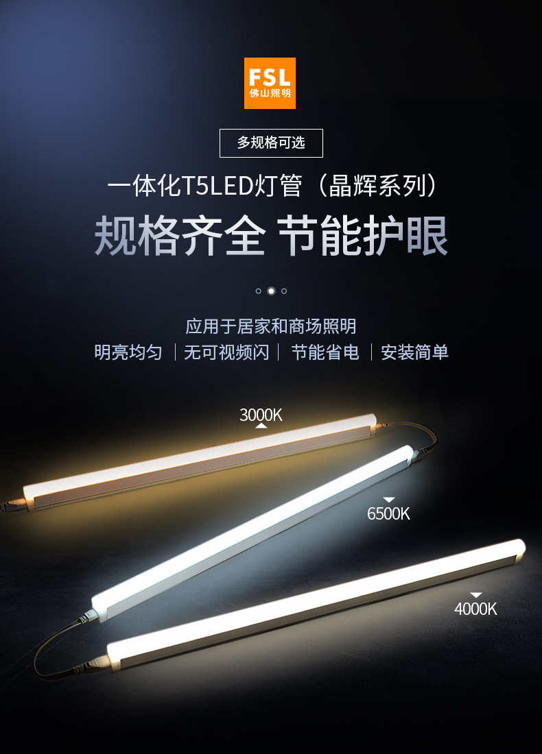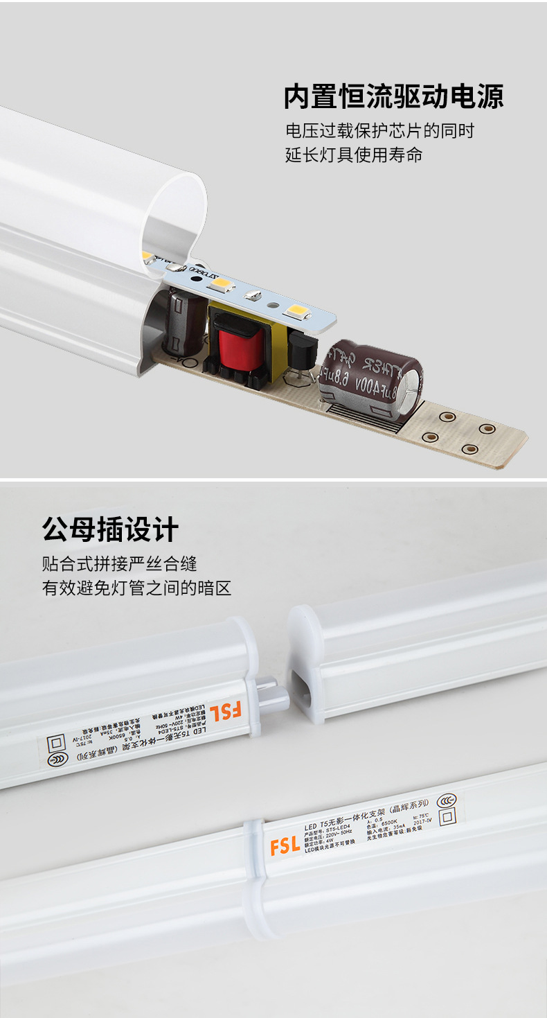FSL Foshan Lighting T5 Интегрированная Светодиодная трубка Полный Комплект 1,2 м Длинный кронштейн Лампа Бытовая люминесцентная лампа