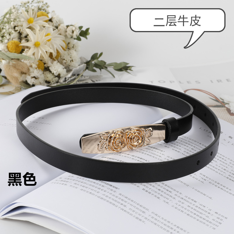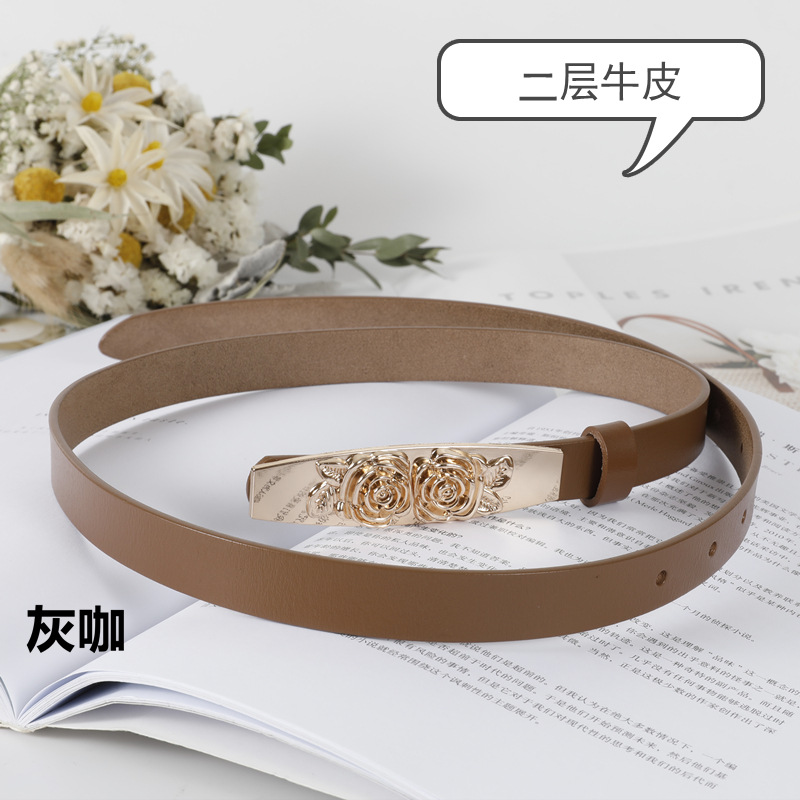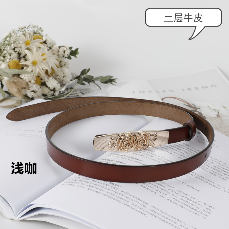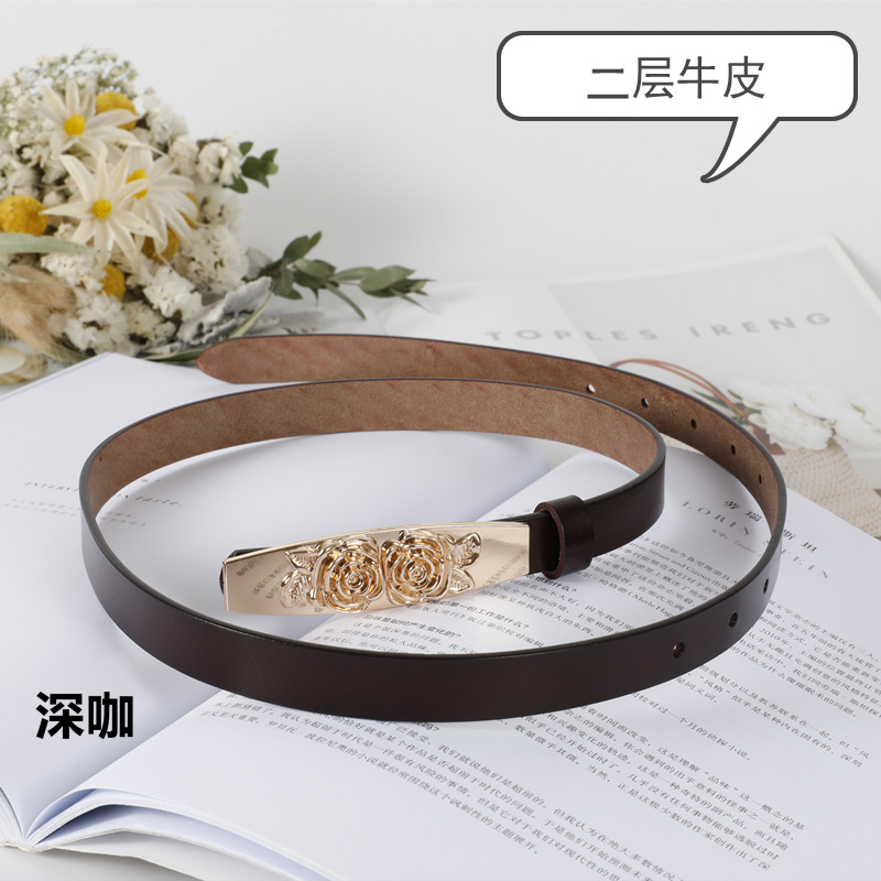 Пояс из натуральной кожи с цветком розы с узкой талией, женское декоративное простое универсальное платье, свитер, тонкий пояс из воловьей кожи