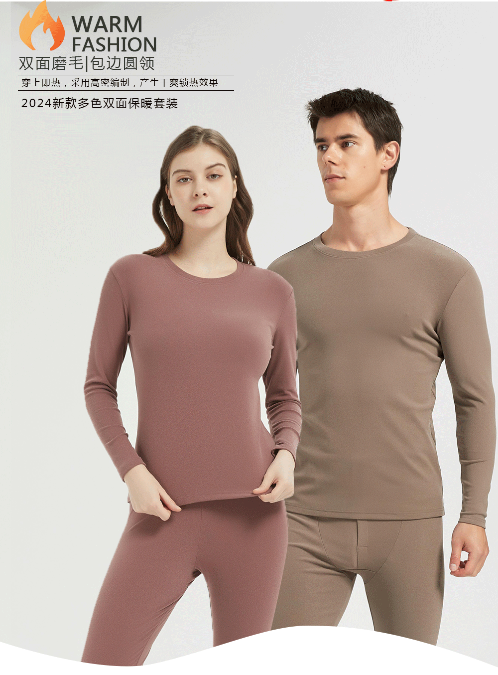 Термобелье с круглым вырезом, мужское осенне-зимнее двустороннее длинное нижнее белье с начесом, женское термобелье, костюм оптом