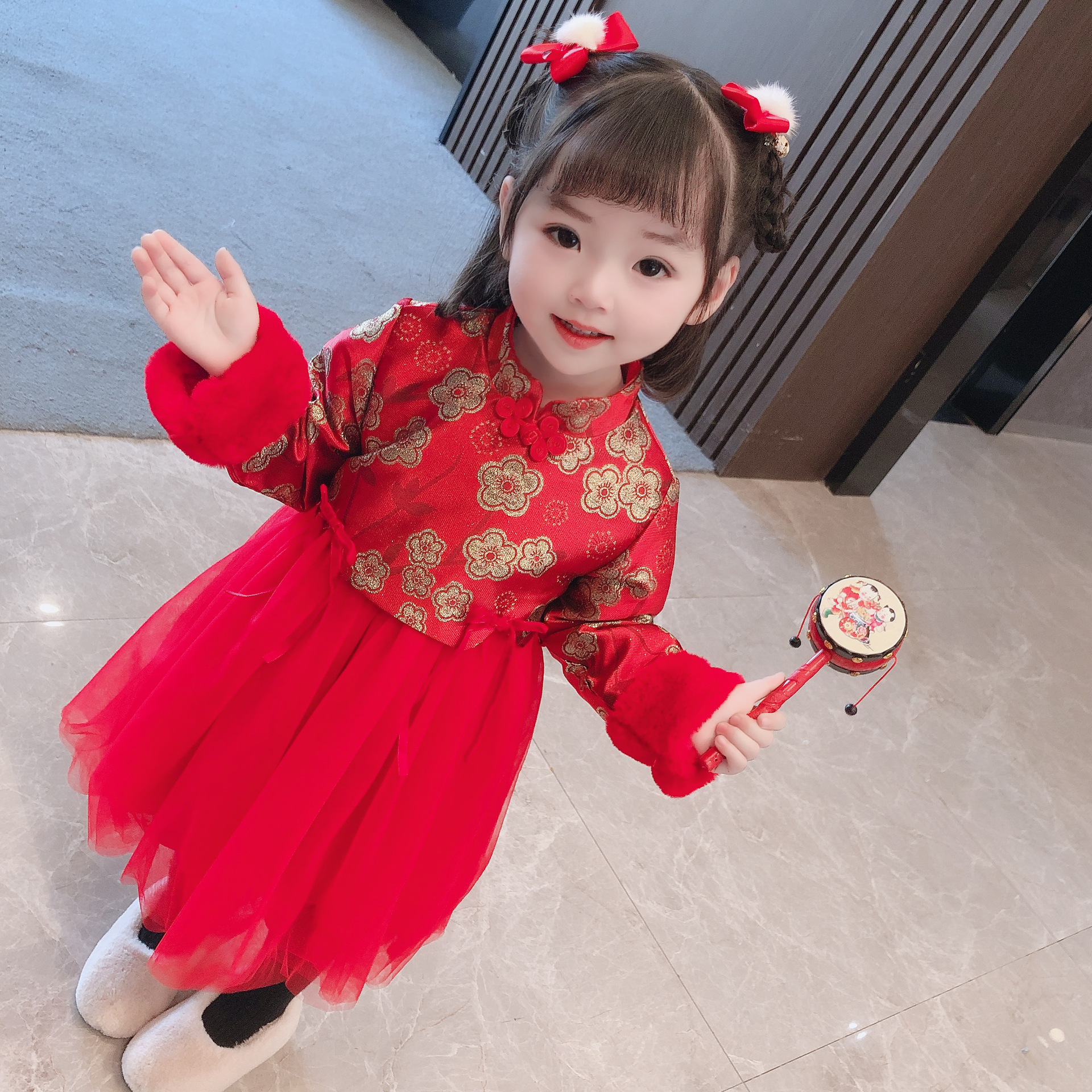 2935 детская одежда для девочек и детей Cheongsam в китайском стиле, осенне-зимнее платье на флисовой подкладке