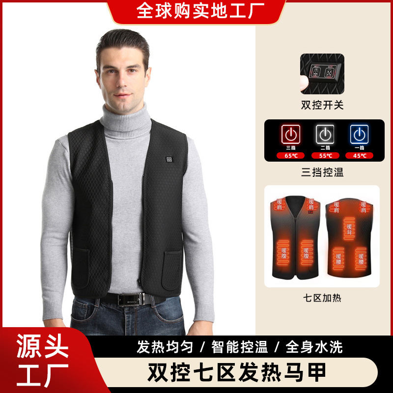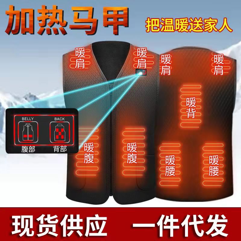 智能恒温发热马甲双控7区USB电热马夹潜水料全身高温加热保暖背心