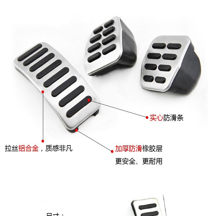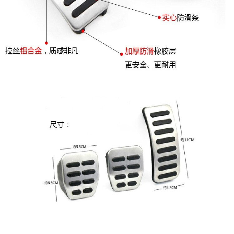 1.原装位金属踏板,品质上乘, 2.原装位安装,无需破坏车内零件,直接安装。 3.安装后提高车内运动气息,车内运动气息十足。 4.更重要的是,踏板橡胶部分为高级防滑橡胶,可以在“雨天”起到很好的防滑作用!