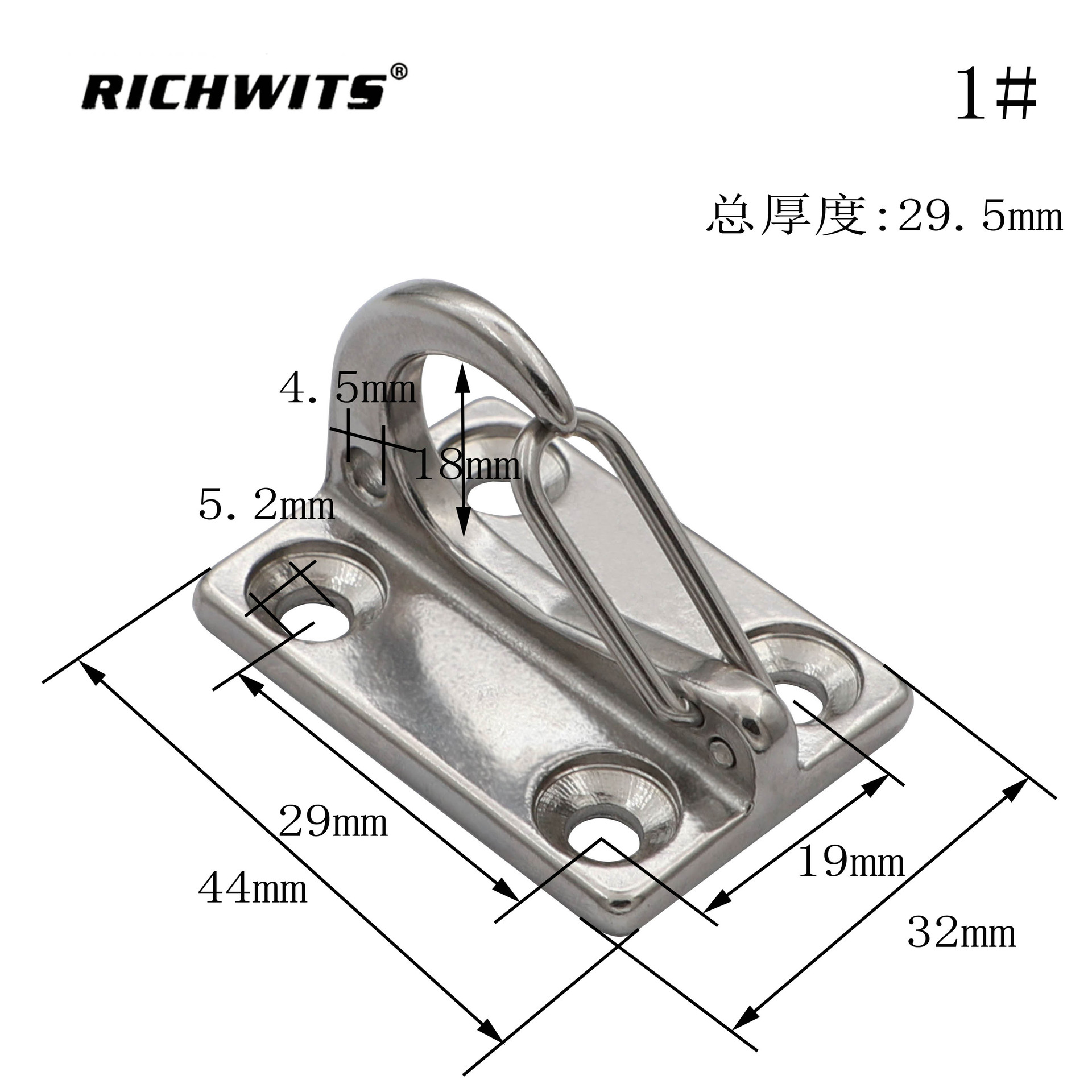 智博金属 RICHWITS绳钩 牵引钩 帆船钩 护舷钩 不锈钢简易弹簧衣帽钩 拉钩 壁挂钩