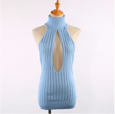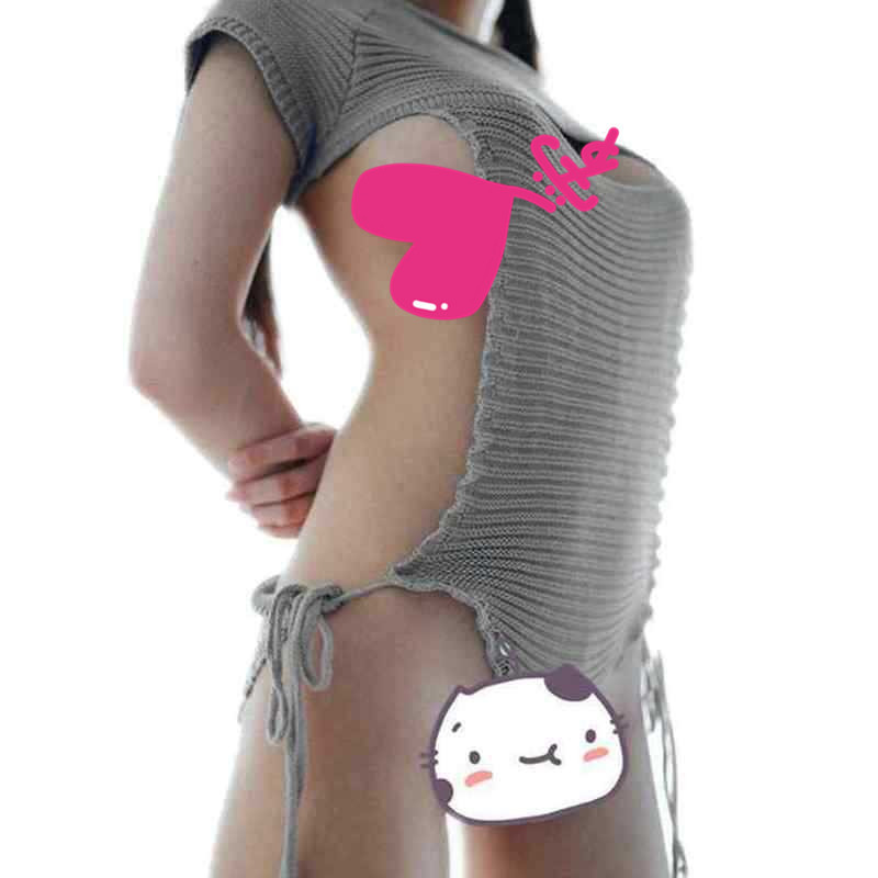 Секс-свитер с открытой спиной Женский убийца Девы с открытой спиной без рукавов на шнуровке Плечо утечка сексуальный страсть тонкий вязаный свитер для женщин