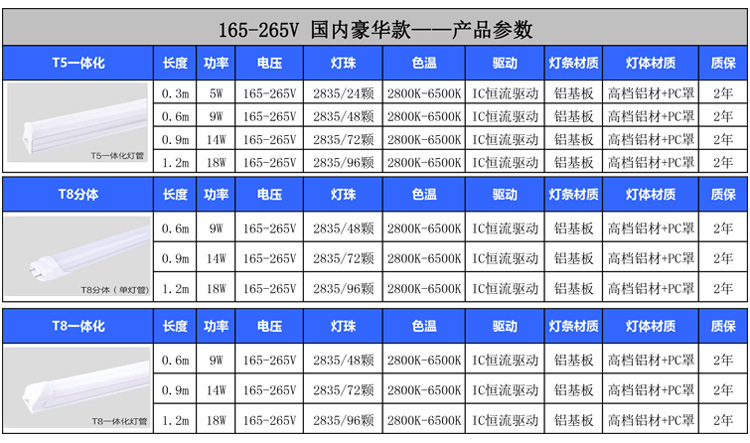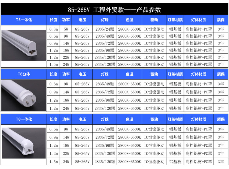 Пользовательские светодиодные трубки с высоким PF широкое давление T5 интегрированный сплит-алюминиевый пластик с высокой световой эффективностью 110V энергосберегающие лампы