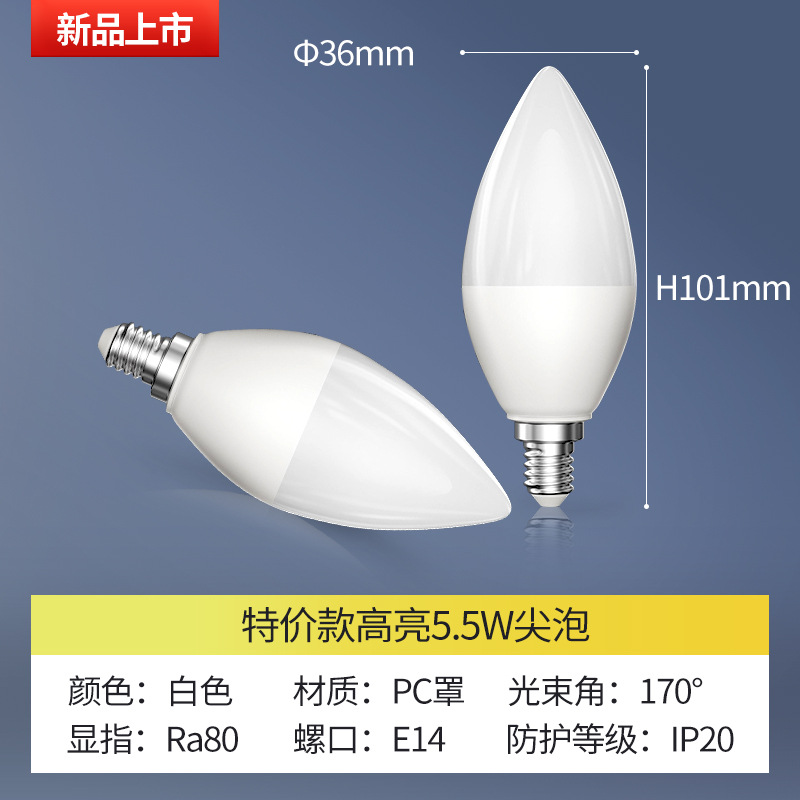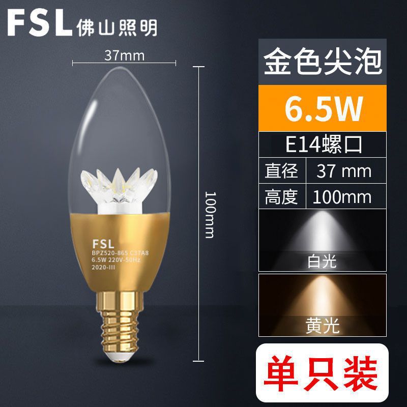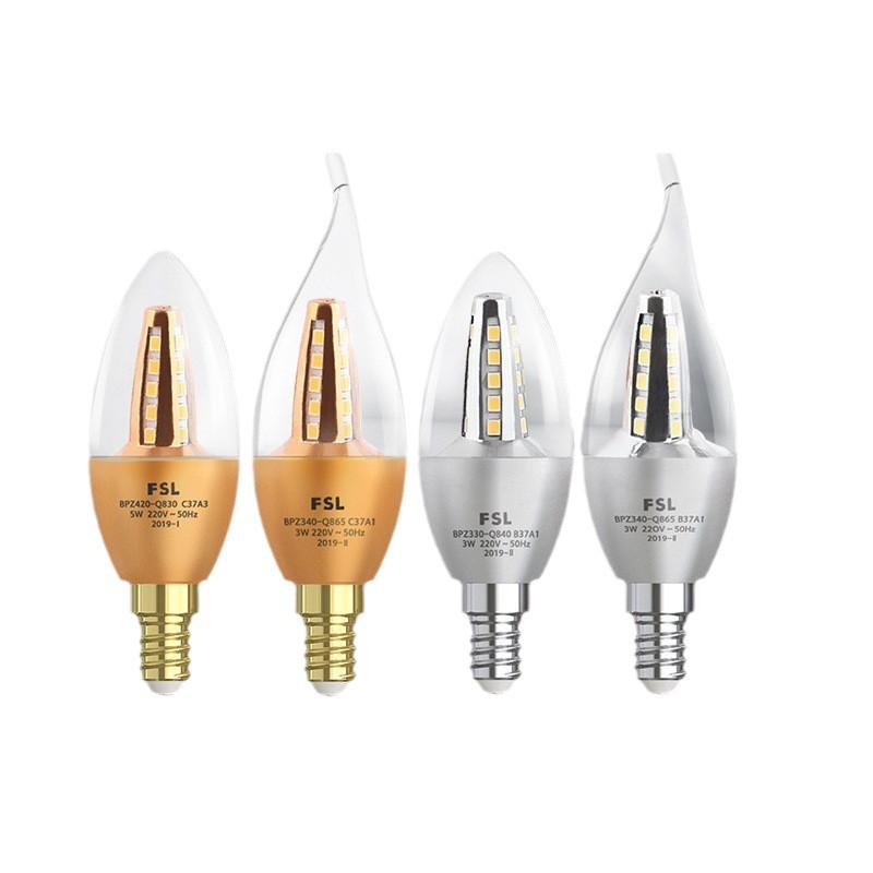 Светодиодная лампа FSL Foshan Lighting, цоколь E14/E27, 5,5 Вт, для внутреннего освещения, люстра, энергосберегающая лампа с заостренным концом.