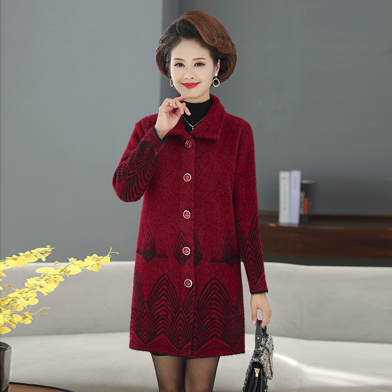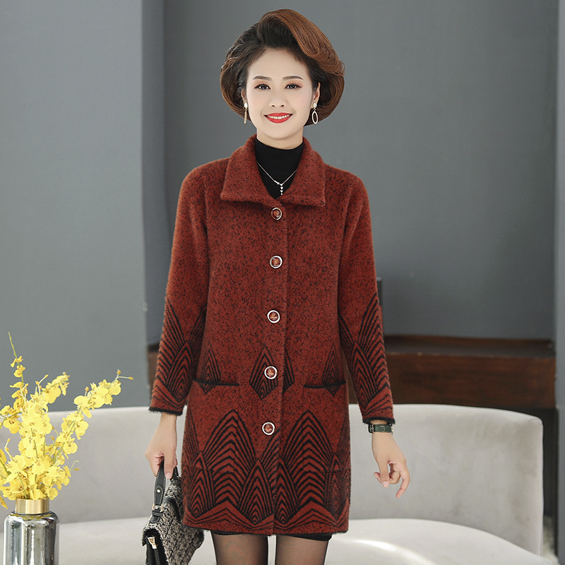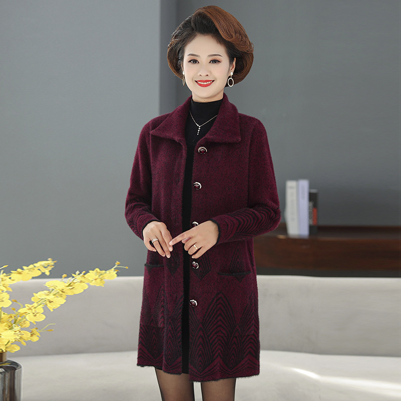 Средние и пожилые мамы одеваются средние и длинные имитационные норковые шерстистые пальто среднего и пожилого женского возраста с квадратным вырезом кардиган пальто бабушки топ
