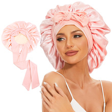 亚马逊热卖仿真丝宽边睡帽 女士色丁圆帽 护发头巾帽子 TJM-301