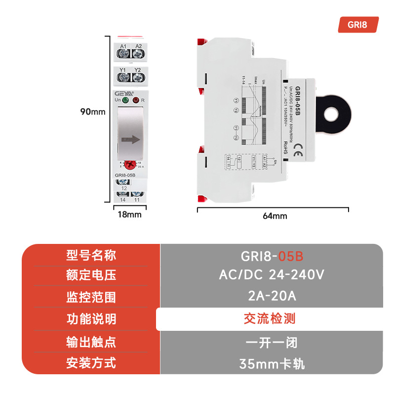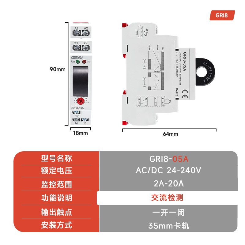 Мониторинговое реле GEYA GRI8-05 обнаруживает защитный ток 2-20А, регулируемый ток 220В.