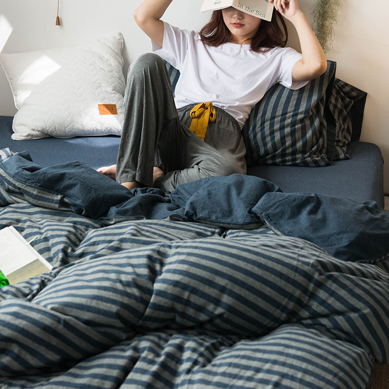 Оригинальный супер мягкий вязаный хлопок без принта, комплект из трех четырех предметов, окрашенный в пряже, чистый хлопок, хорошее общежитие для продукта, чистый хлопок, тяньчжу, Хлопковое одеяло, простыня