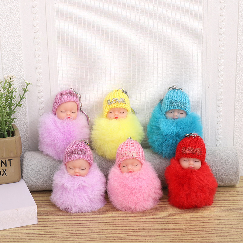 Милый спящий плюшевый брелок-помпон, очаровательный вязаный плюшевый кукол-шапочка, подвеска для сумки, виниловый мини-подарок.