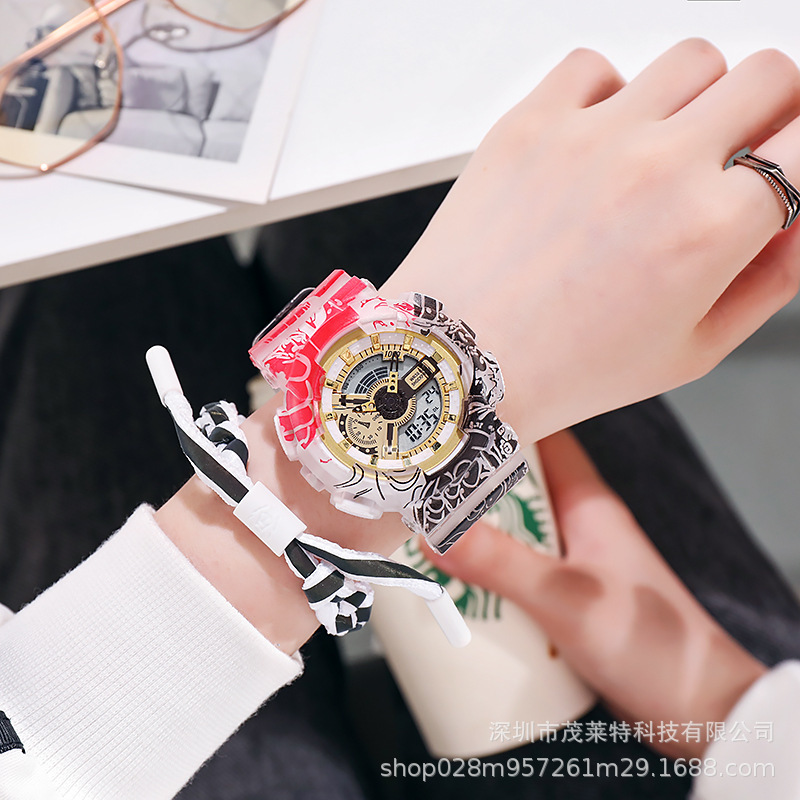 Креативные вдохновляющие граффити Спортивные модные повседневные часы Цельный двойной механизм Цифровые наручные электронные часы в стиле кибер-знаменитостей